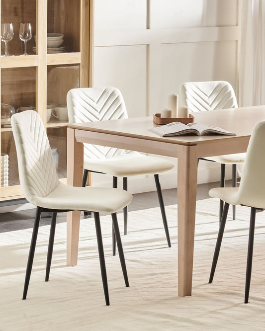 Esszimmerstuhl 4er Set POWELL Samtstoff Beige