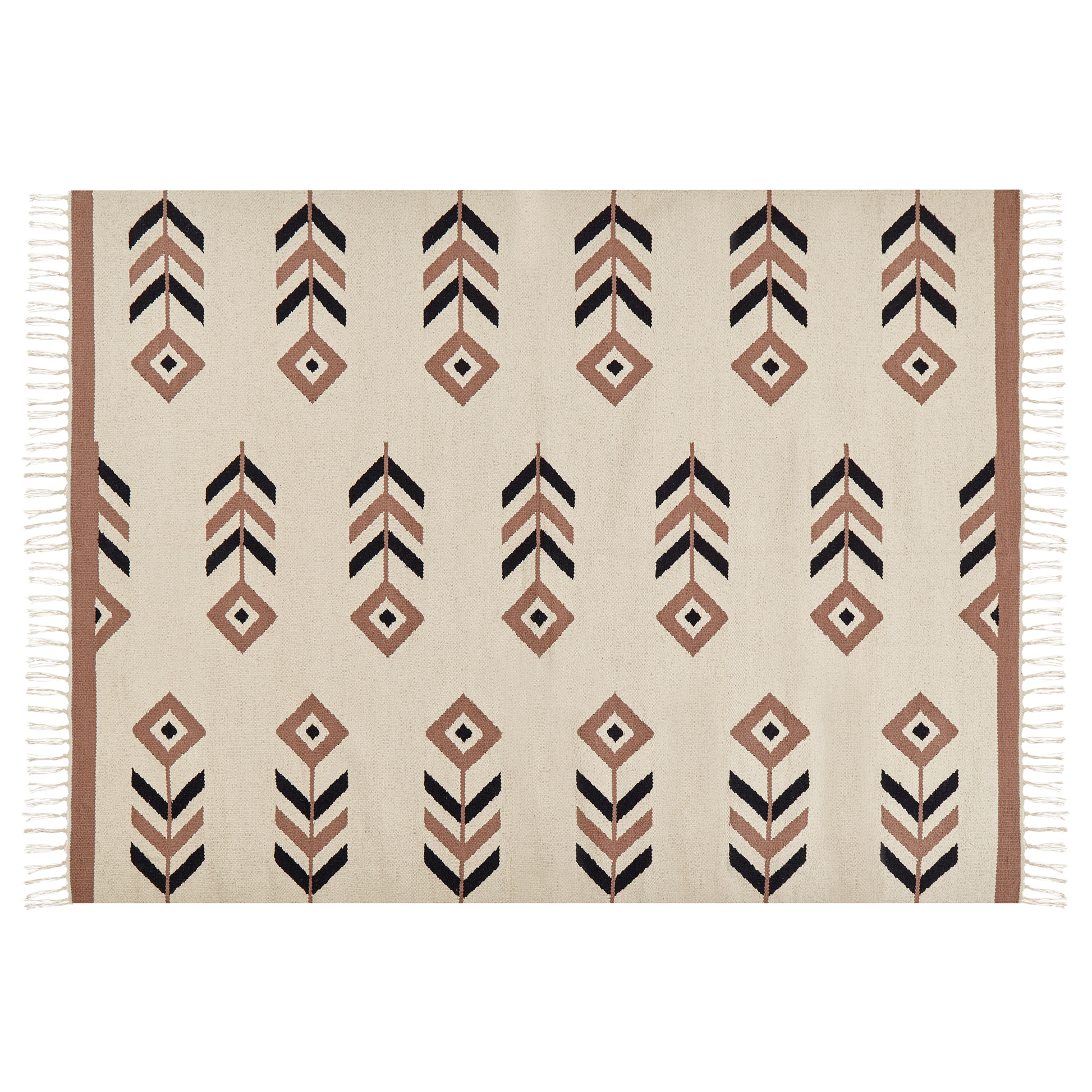 Kelim Teppich Baumwolle beige / schwarz 140 x 200 cm geometrisches Muster Kurzflor NIAVAN