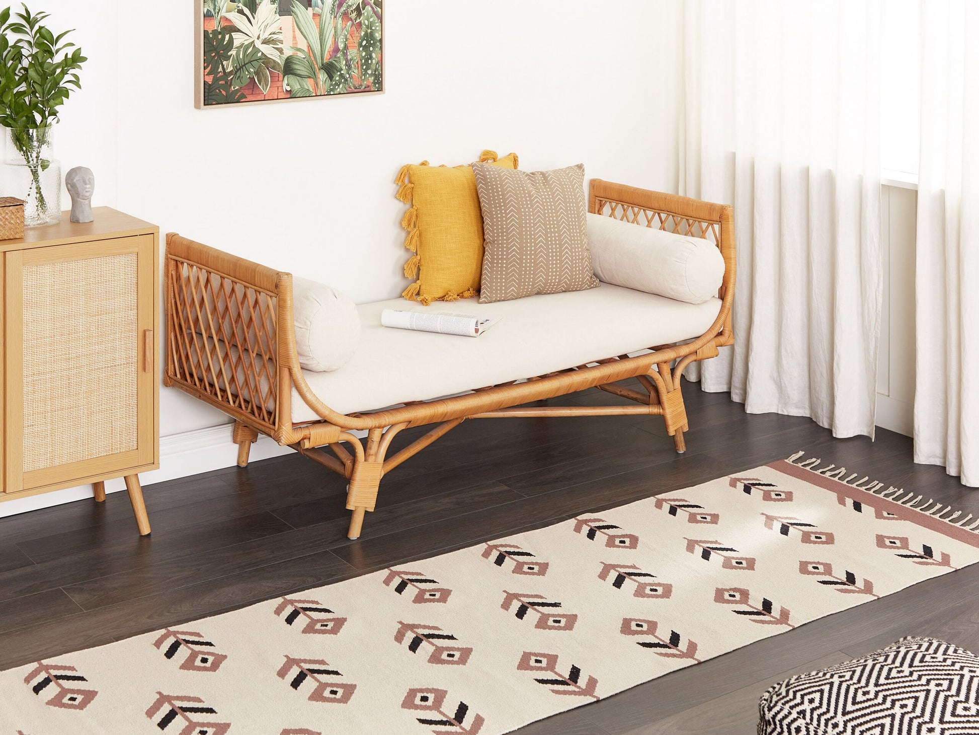 Kelim Teppich Baumwolle beige / schwarz 80 x 300 cm geometrisches Muster Kurzflor NIAVAN