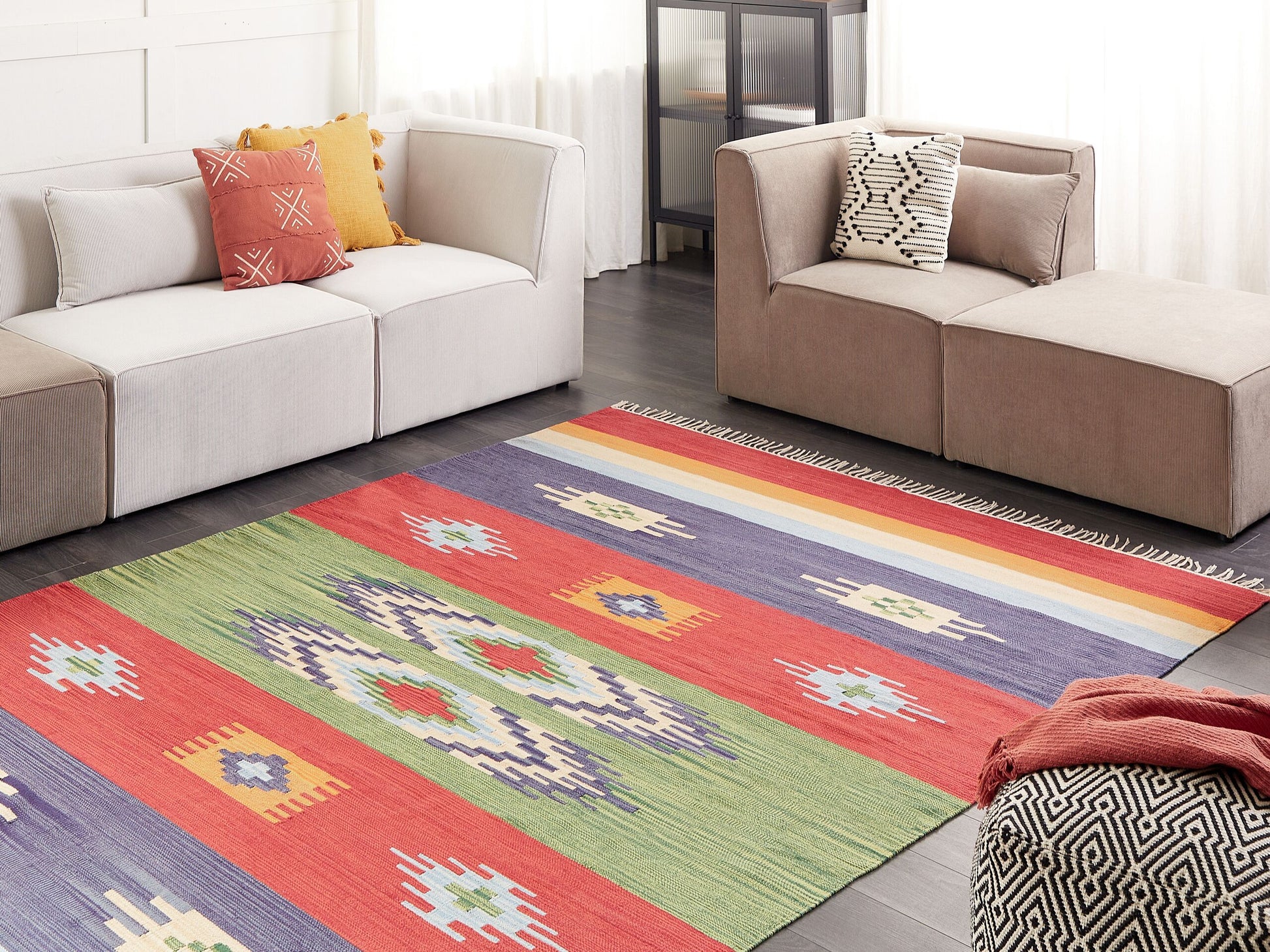 Kelim Teppich Baumwolle mehrfarbig 200 x 300 cm geometrisches Muster Kurzflor KAMARIS