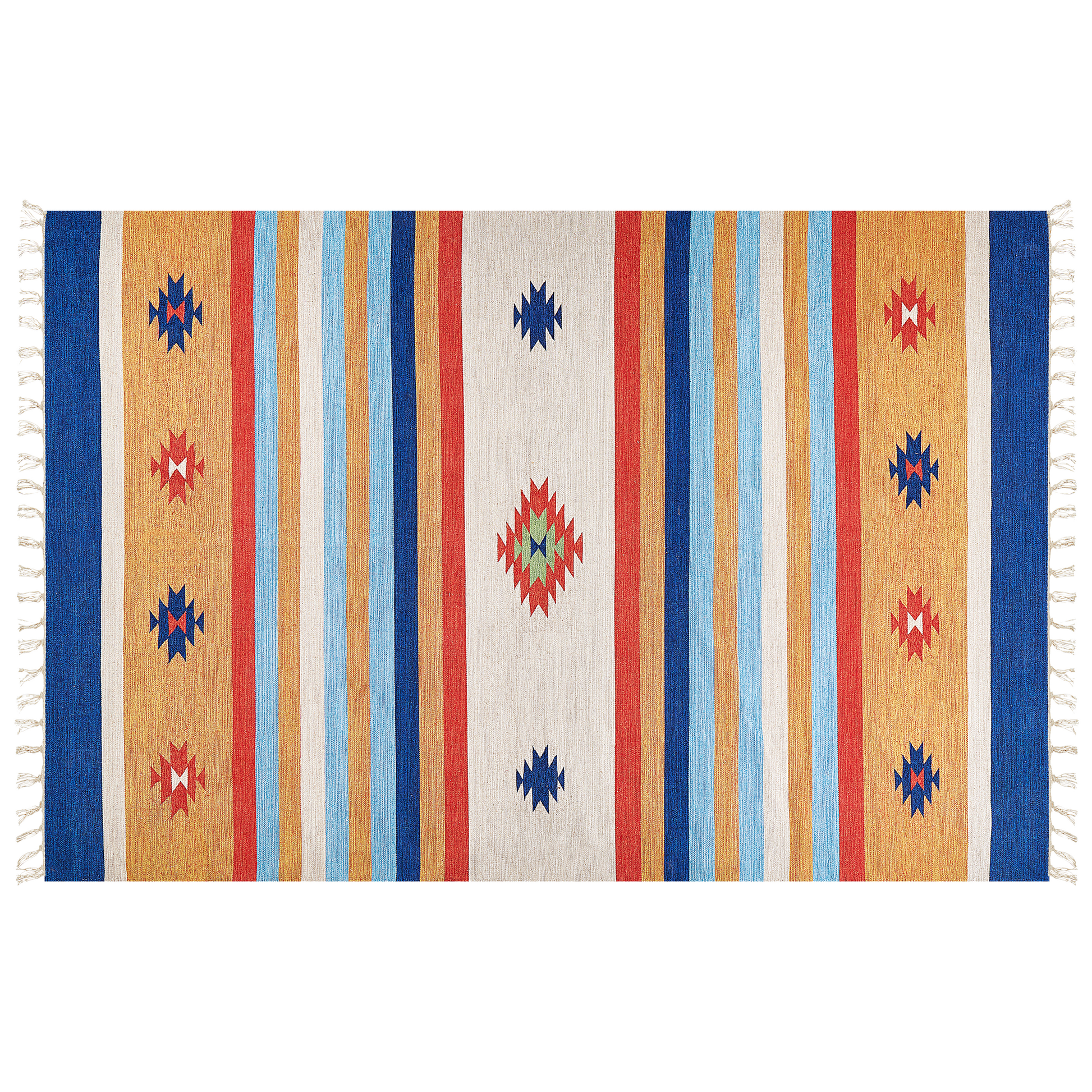 Kelim Teppich Baumwolle mehrfarbig 200 x 300 cm geometrisches Muster Kurzflor TARONIK