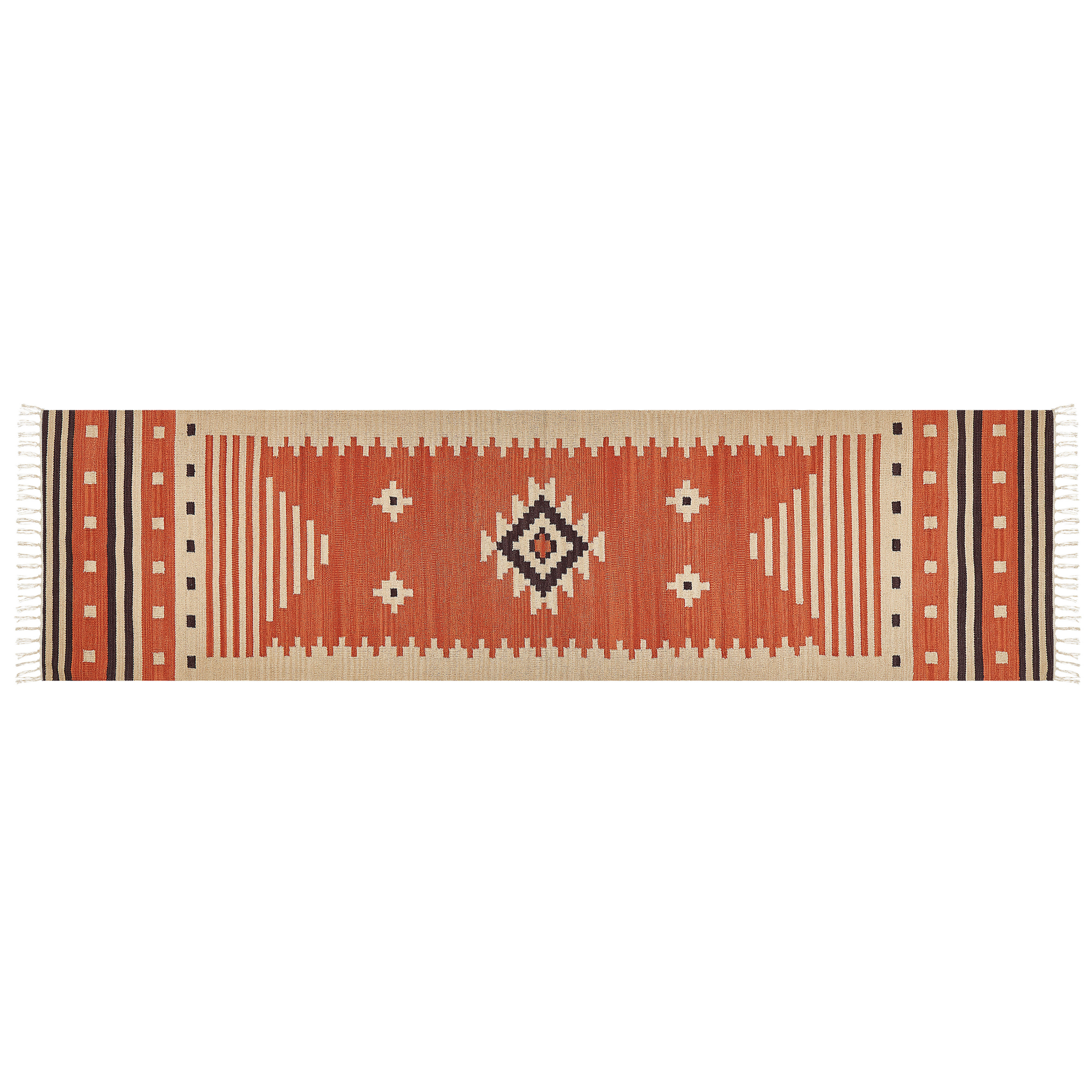 Kelim Teppich Baumwolle orange 80 x 300 cm geometrisches Muster Kurzflor GAVAR