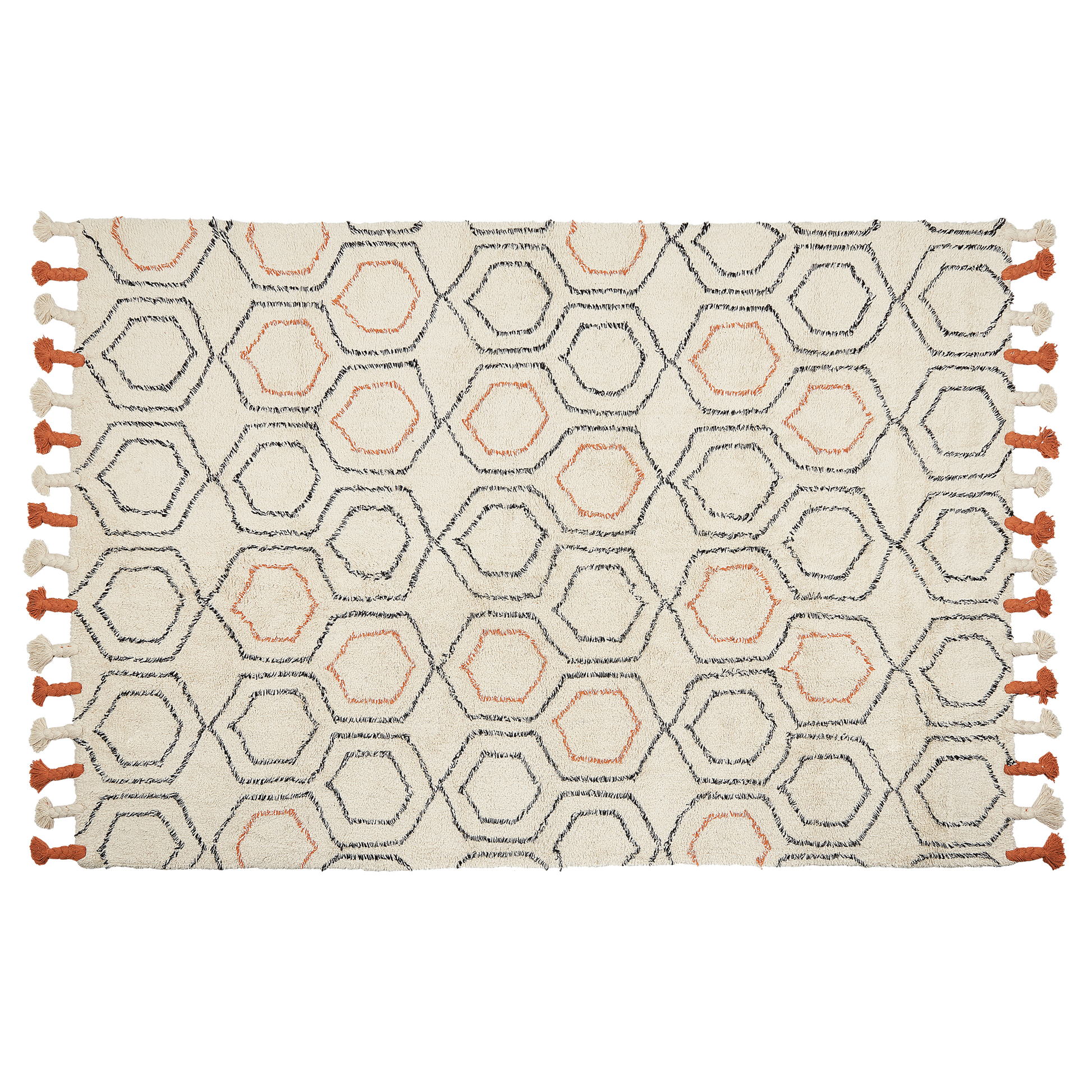 Teppich Baumwolle beige / orange 140 x 200 cm geometrisches Muster Kurzflor HAJIPUR