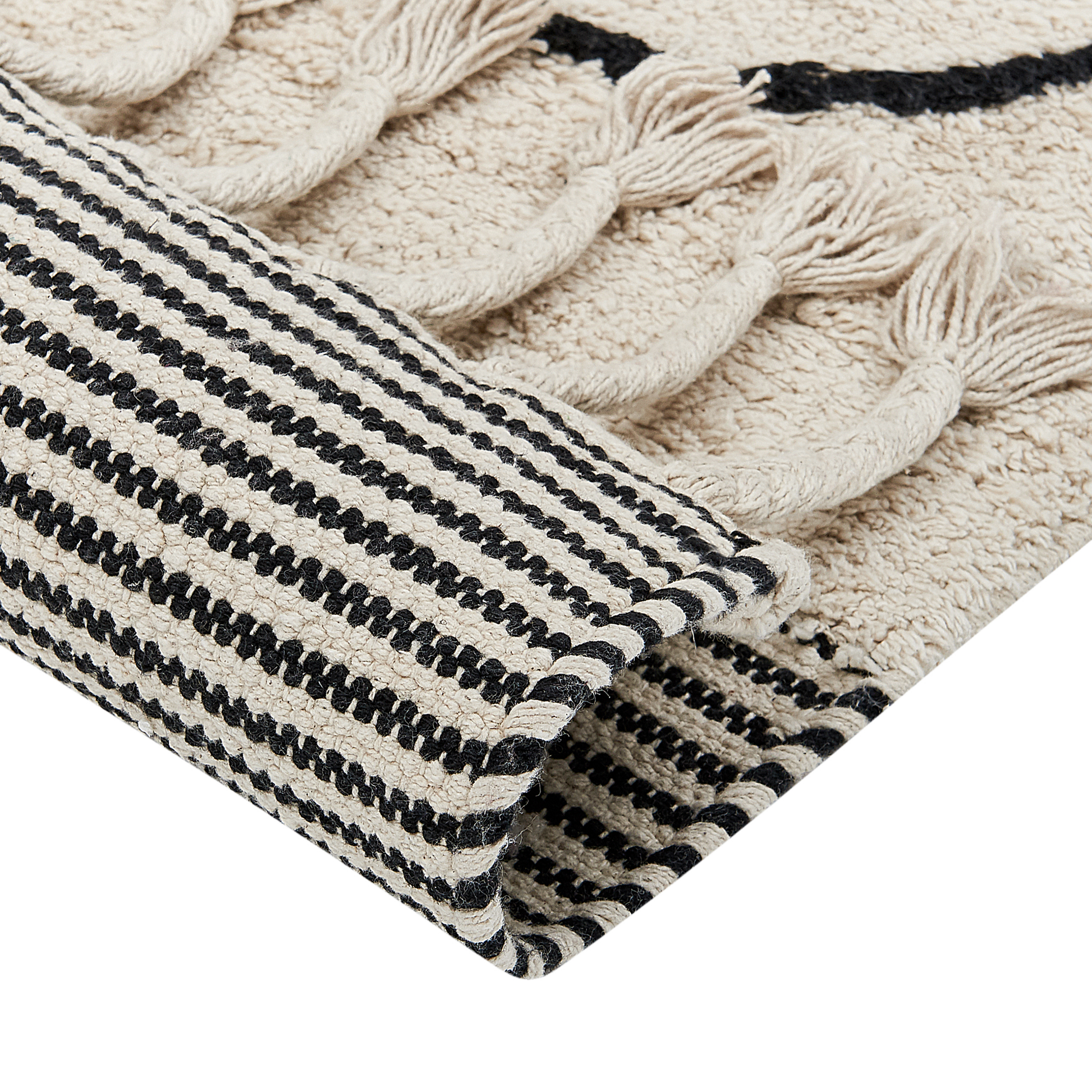 Teppich Baumwolle beige / schwarz 160 x 230 cm abstraktes Muster Kurzflor DOKUZ