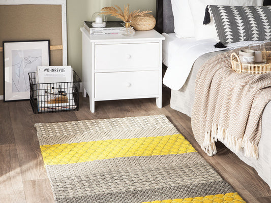 Teppich Wolle grau / gelb 80 x 150 cm Streifenmuster Kurzflor AKKAYA