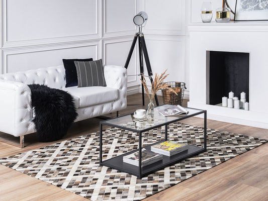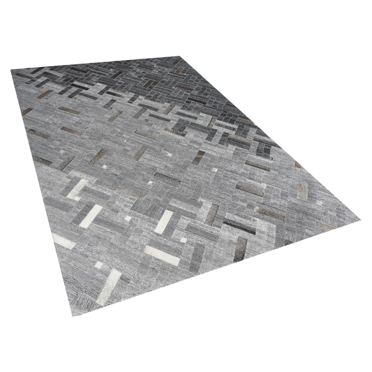 Teppich Kuhfell grau-braun 140 x 200 cm Patchwork Kurzflor AKDERE