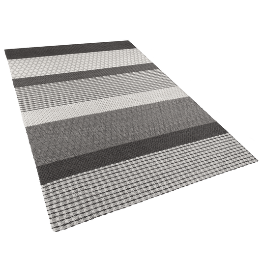 Teppich Wolle grau 80 x 150 cm Streifenmuster Kurzflor AKKAYA