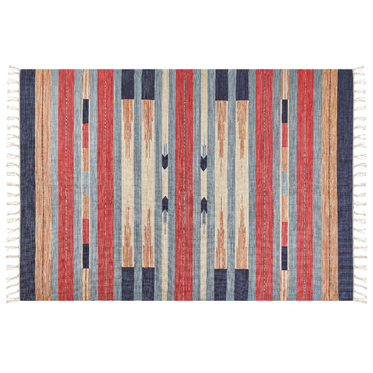 Kelim Teppich Baumwolle mehrfarbig 140 x 200 cm geometrisches Muster Kurzflor APARAN