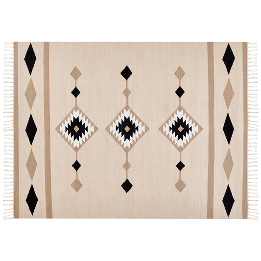 Kelim Teppich Baumwolle beige / schwarz 160 x 230 cm geometrisches Muster Kurzflor NIAVAN