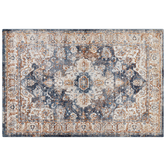 Teppich beige / blau 200 x 300 cm orientalisches Muster Kurzflor DVIN