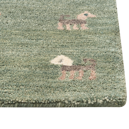 Gabbeh Teppich Wolle grün 140 x 200 cm Tiermuster Hochflor KIZARLI