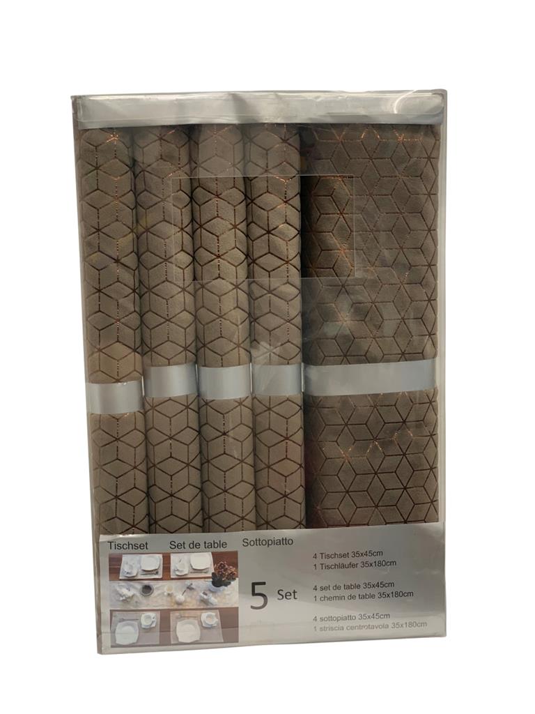 Tischset 5-teilig 4 Tischsets plus 1 Tischläufer Farbe: Kaffebraun-Braun
