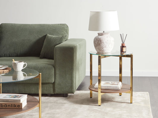 Beistelltisch Glas / Metall dunkler Holzfarbton / gold LOVELL