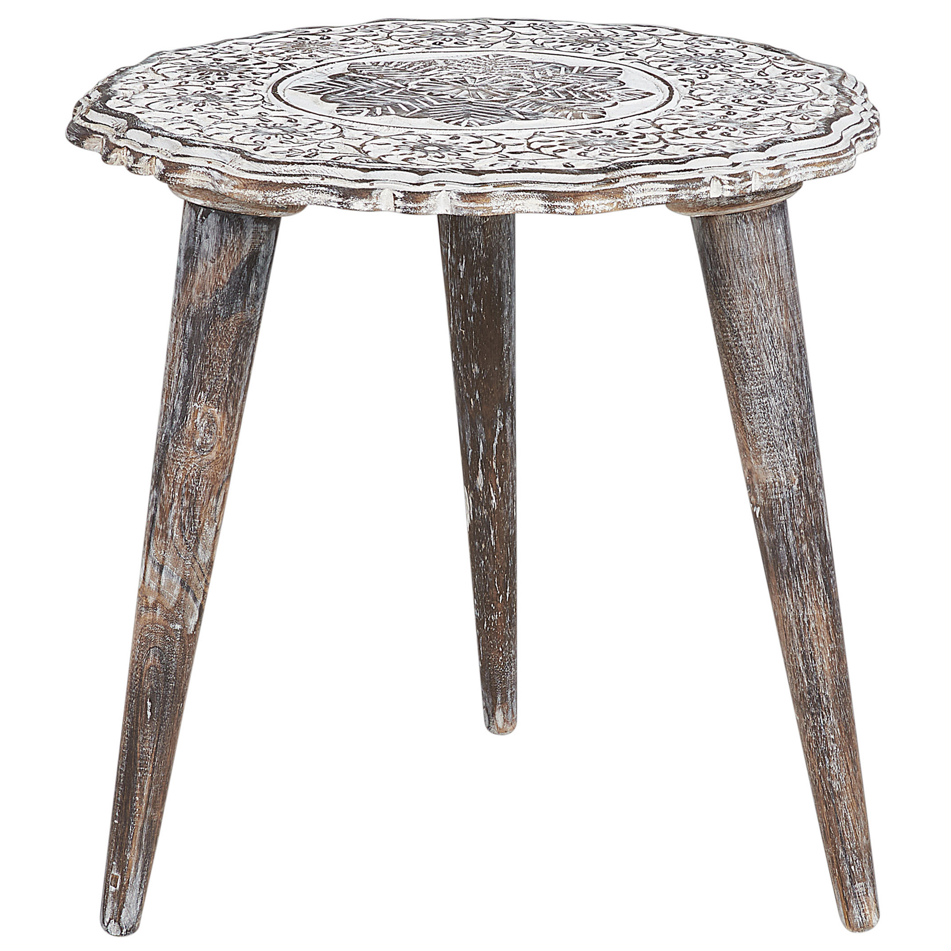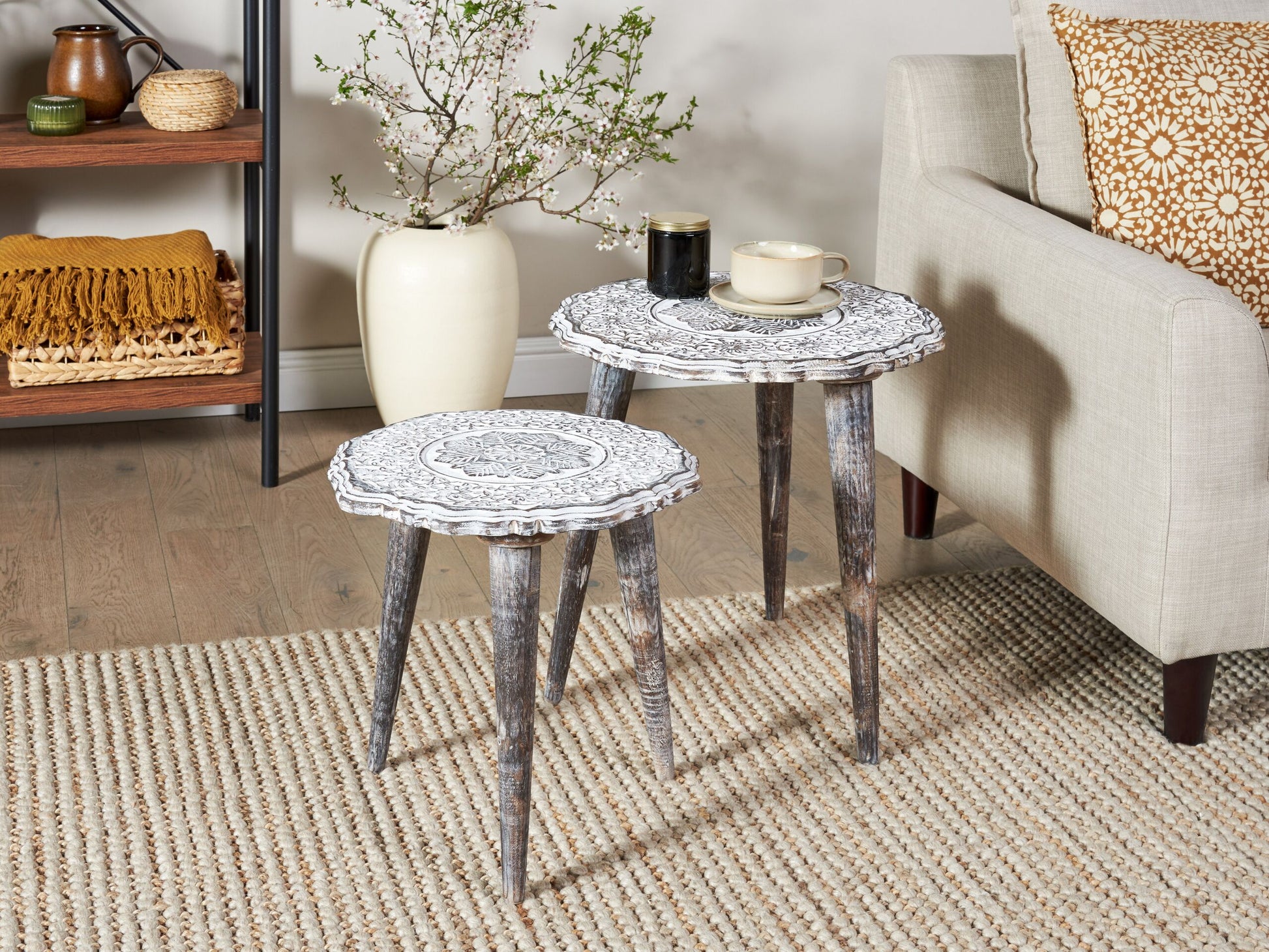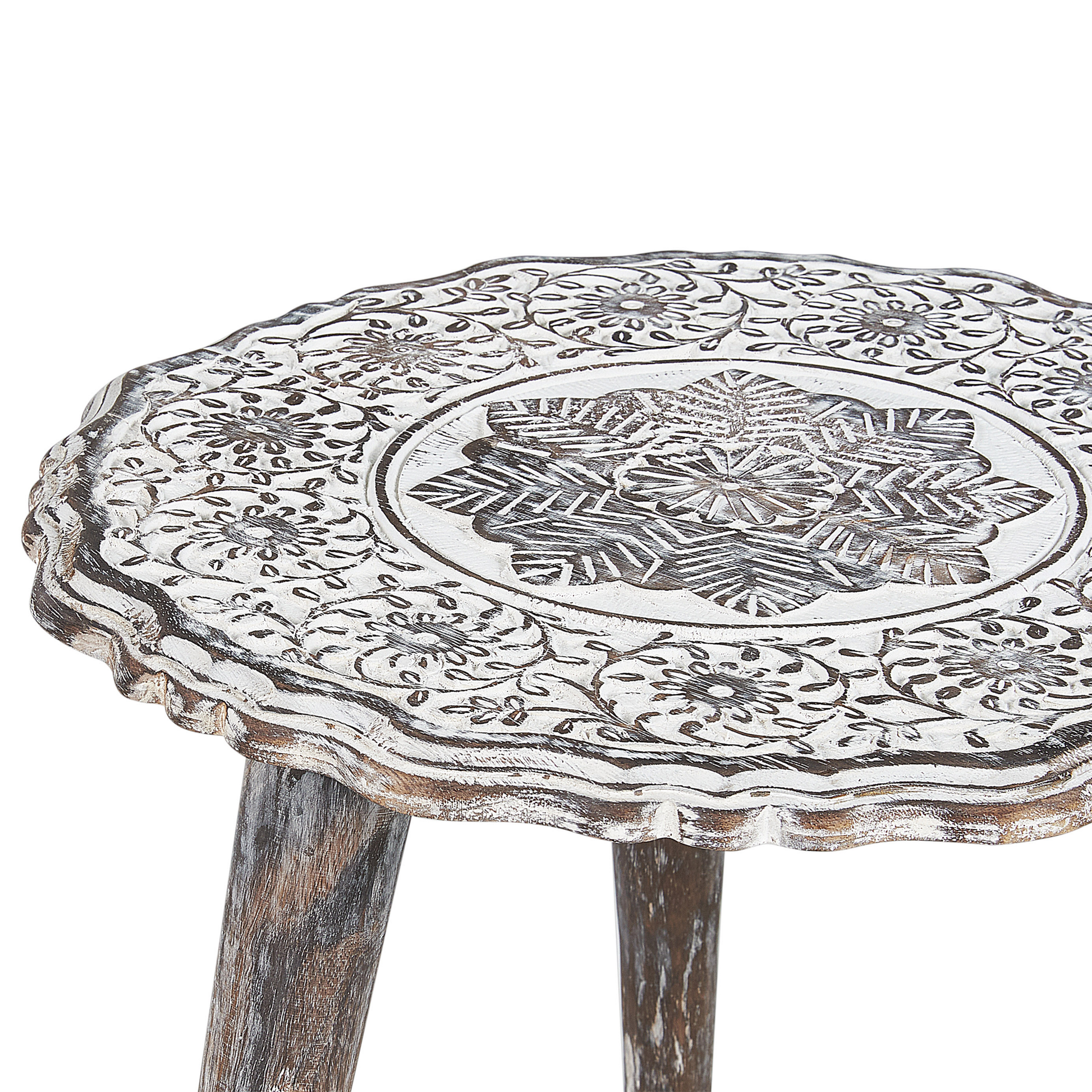 Beistelltisch 2er Set Mangoholz dunkelbraun / cremeweiss rund ADRO