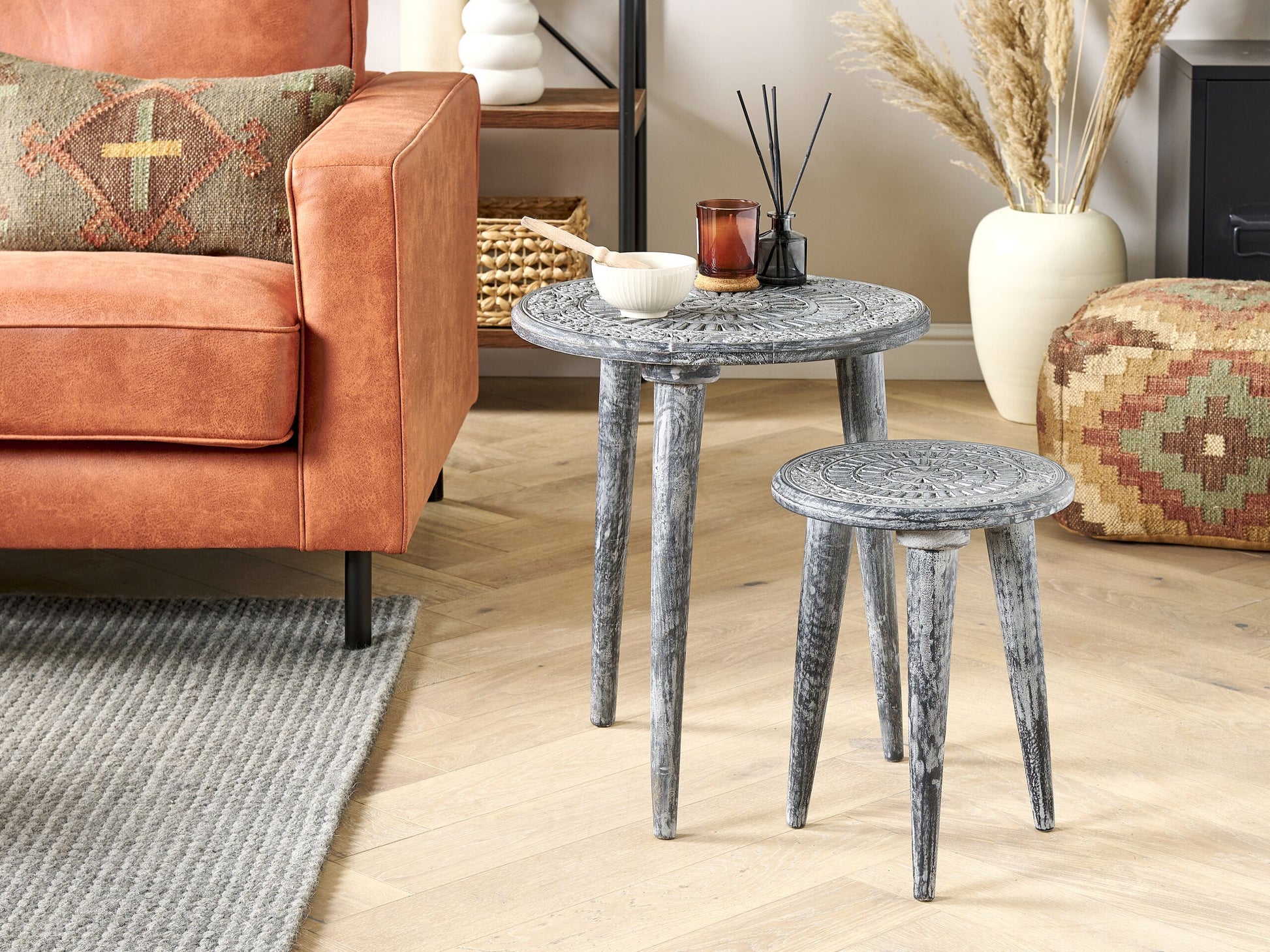 Beistelltisch 2er Set Mangoholz grau rund JATRA