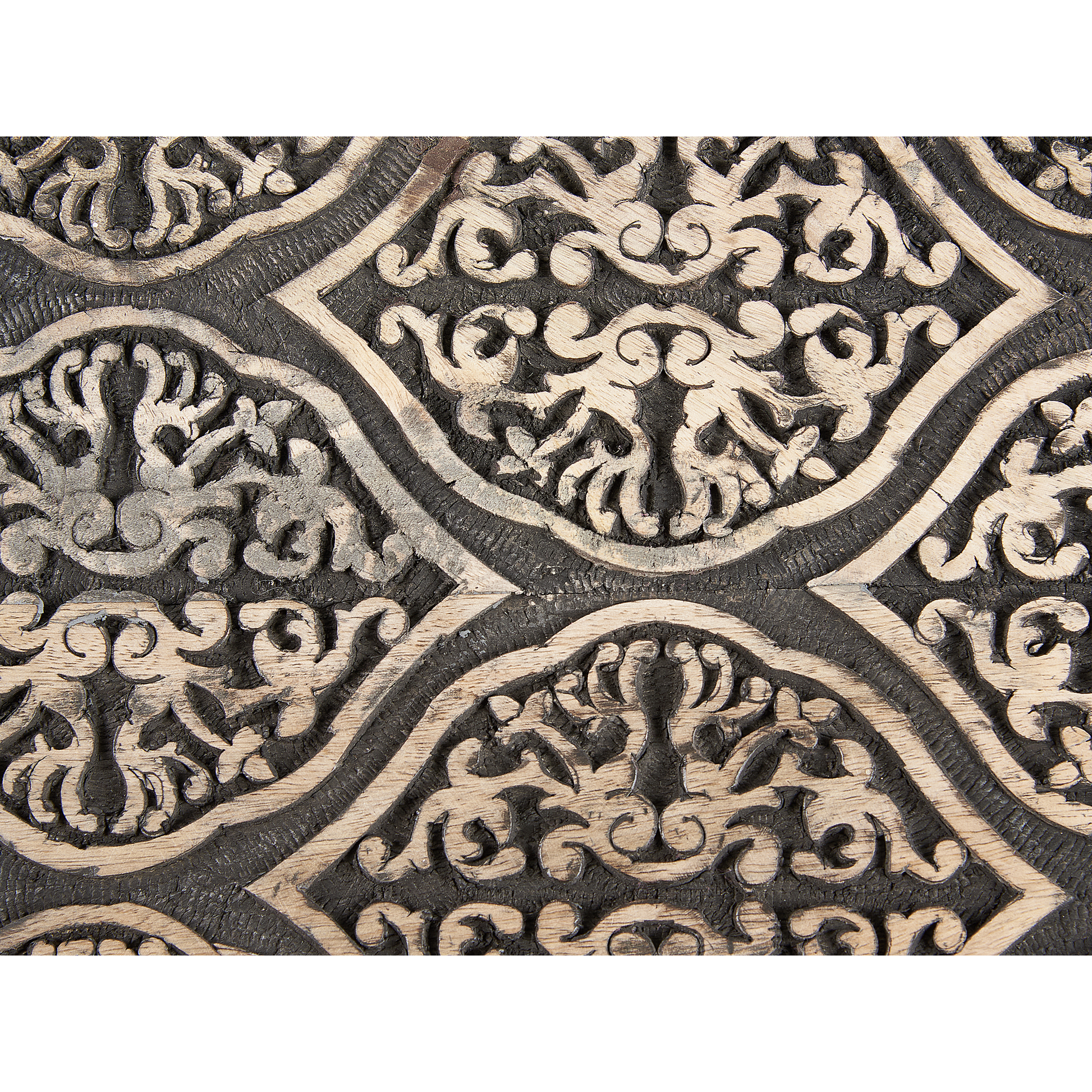 Setzen Sie auf mehr Ablagefläche bei Ihrem Sofa oder Bett und peppen Sie Ihre Wohnbereiche mit diesem 2-teiligen Set auf. Diese Sofatisch-Kombi punktet mit ihren hervorragenden Materialien und ihrem wundervollen Boho-Look. Beide Couchtische bestehen aus langlebigem, wachspoliertem und daher auch pflegeleichtem Mango Holz. Die formschönen Muster auf den Tischoberflächen sind mit Liebe zum Detail von Hand geschnitzt worden. So wird jedes der Modelle bestimmt zum Highlight jeder Einrichtung. Die dreibeinigen Gestelle sorgen für angemessene Stabilität und ergänzen das atemberaubend schöne Design. Material: Mango Holz. Gewicht: 5 Montage: Beine / Füsse nicht montiert Holzart: Mangifera indica Holzursprung: Indien Gewichtskapazität: 15 Gesamtabmessungen: 46x46x44 Das Angebot beinhaltet: 2 x Beistelltisch zusätzliche Information: Da jedes Produkt handgefertigt wird, kann es zu kleineren Abweichungen in der Farbe und der äusseren Struktur kommen. Diese Abweichungen stellen keinen Qualitätsmangel dar, sondern sind eine warentypische Eigenschaft., Der sichtbare Alterungseffekt, sowie jede Art von Verfärbung oder Abnutzung sind absichtlich und stellen keinen Qualitätsmangel des Produkts dar. Gestalten: Rund Art: Beistelltisch 2er Set Stil: Klassisch Allgemeine Farbe: Heller Holzfarbton Hauptmaterial: Mango Holz