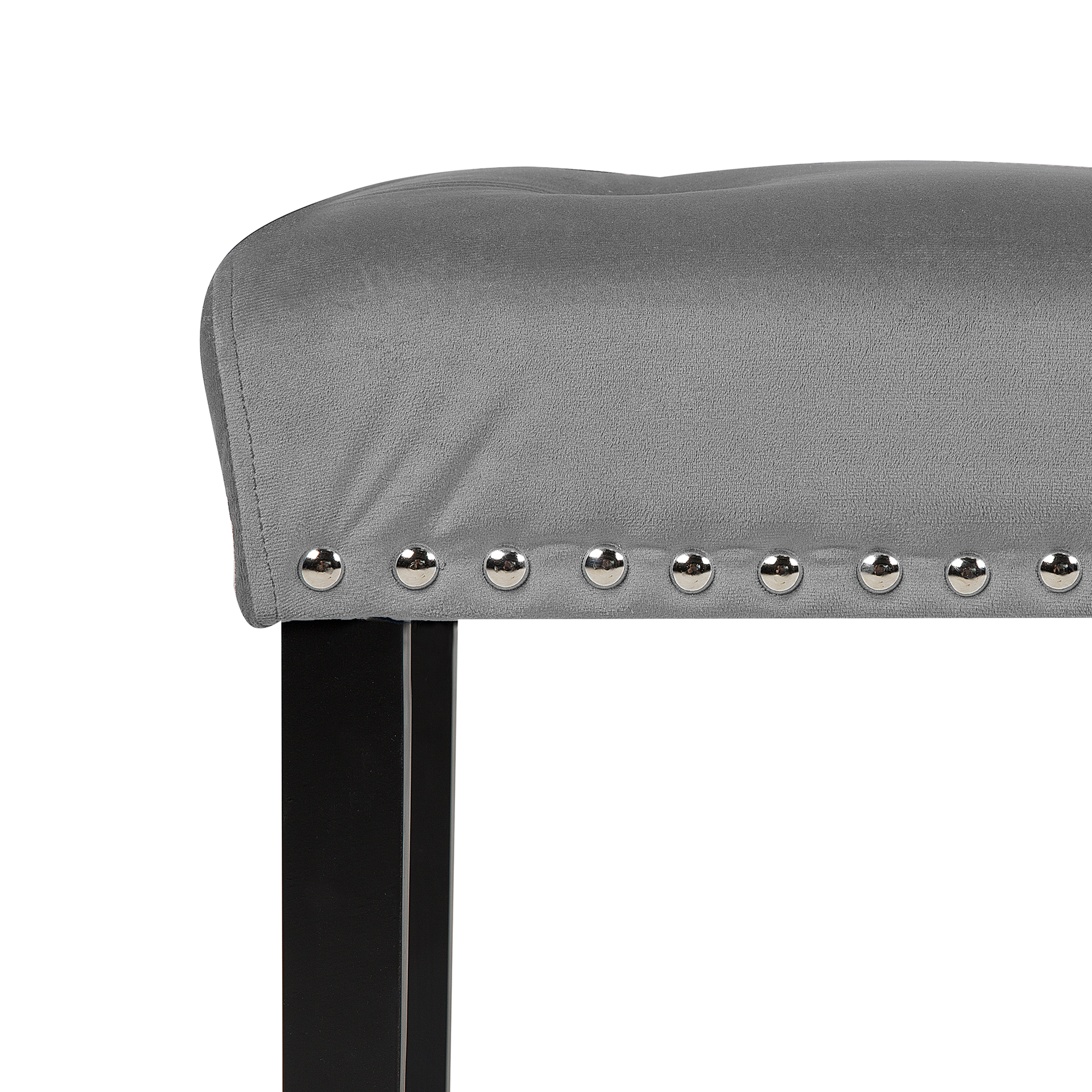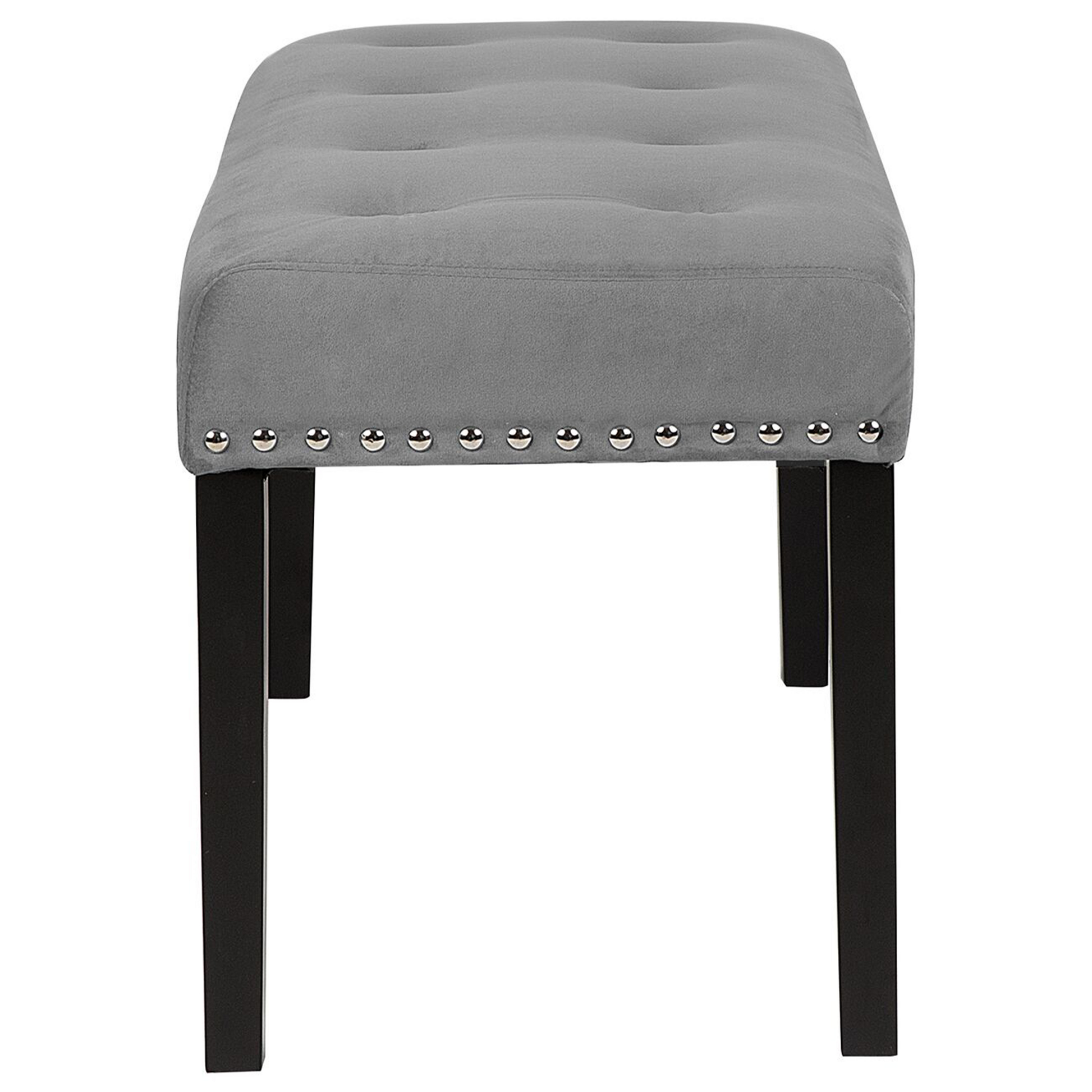 Diese stilvolle Bank mit grauem Samtstoffbezug passt sowohl in Ihr Ess-, als auch Schlaf- oder Wohnzimmer. Sie ist durch die Polsterung aus weichem Schaumstoff sehr bequem und bietet als zusätzliche Sitzgelegenheit jedem einen gemütlichen Platz. Das besondere Highlight dieses Möbels ist die Verzierung mit Nieten aus Metall, welche die Sitzbank besonders edel aussehen lässt. Material: Samtstoff. Zusätzliches Material: Kiefernholz. Material Zusammensetzung: 100% Polyester Gewicht: 10 Montage: Beine / Füsse nicht montiert Holzart: Pinus massoniana Holzursprung: China Gewichtskapazität: 150 Polsterstärke: 15 Das Angebot beinhaltet: 1 x Bank Sitzfläche: 102x43 Höhe: 51 zusätzliche Information: Bitte beachten Sie, dass Samtstoff unter verschiedenen Lichtverhältnissen eine andere Optik haben kann – das Material schimmert bei Tageslicht stärker und wirkt bei künstlicher Beleuchtung in Innenräumen eher gedämpft. Aufgrund der glatten, hochdichten Struktur des Gewebes kann sein Farbton auch variieren, wenn man mit der Hand in verschiedene Richtungen und Winkel über den Stoff fährt. Um den Farbton auszugleichen und Druckstellen zu vermeiden, sollte der Webstoff sanft mit einer offenen Handfläche in eine Richtung gestrichen, mit einem feuchten Tuch abgewischt oder einem Dampfbügeleisen gebügelt werden. Breite: 102 Tiefe: 43 Art: Bank Stil: Glamourös Allgemeine Farbe: Grau Hauptmaterial: Samtstoff