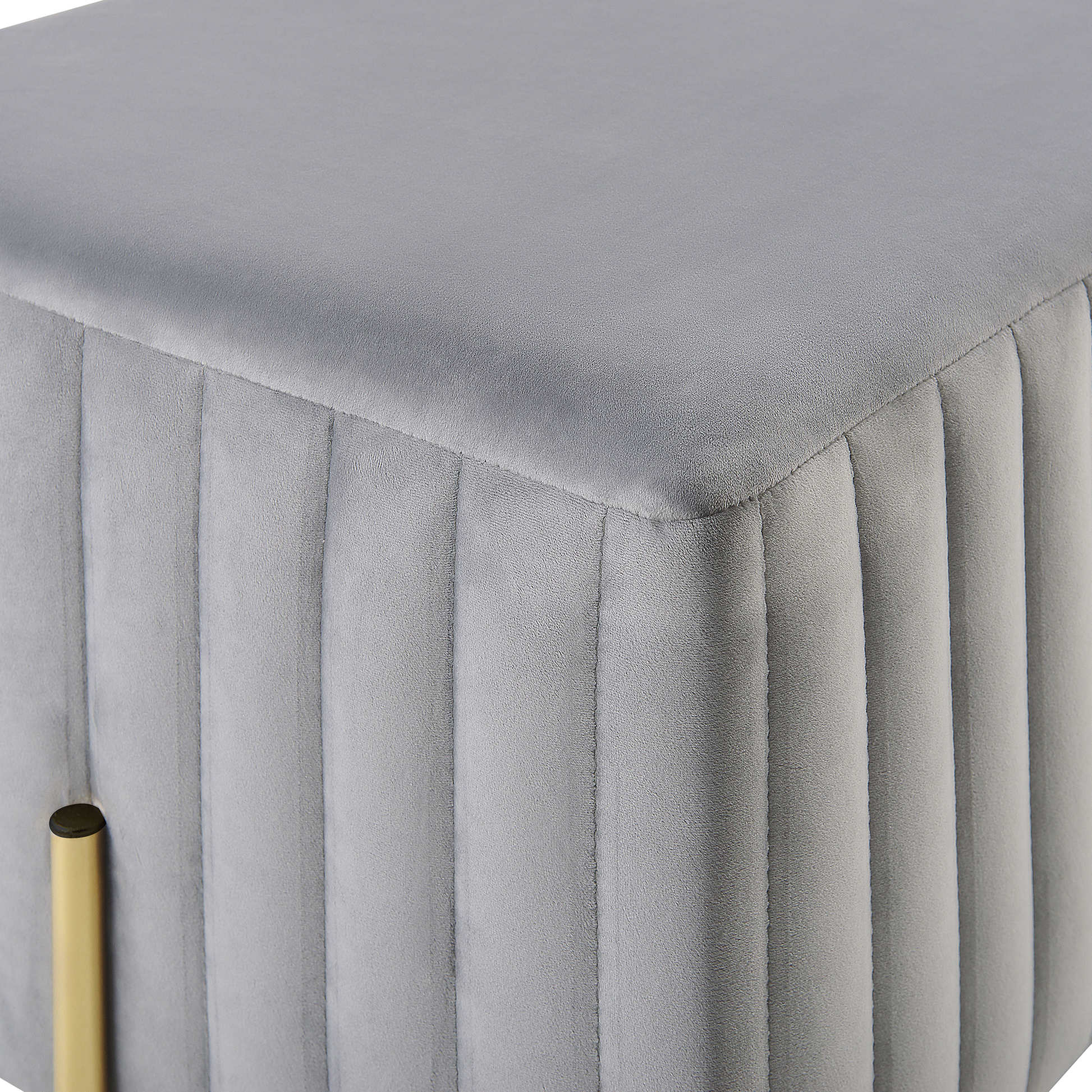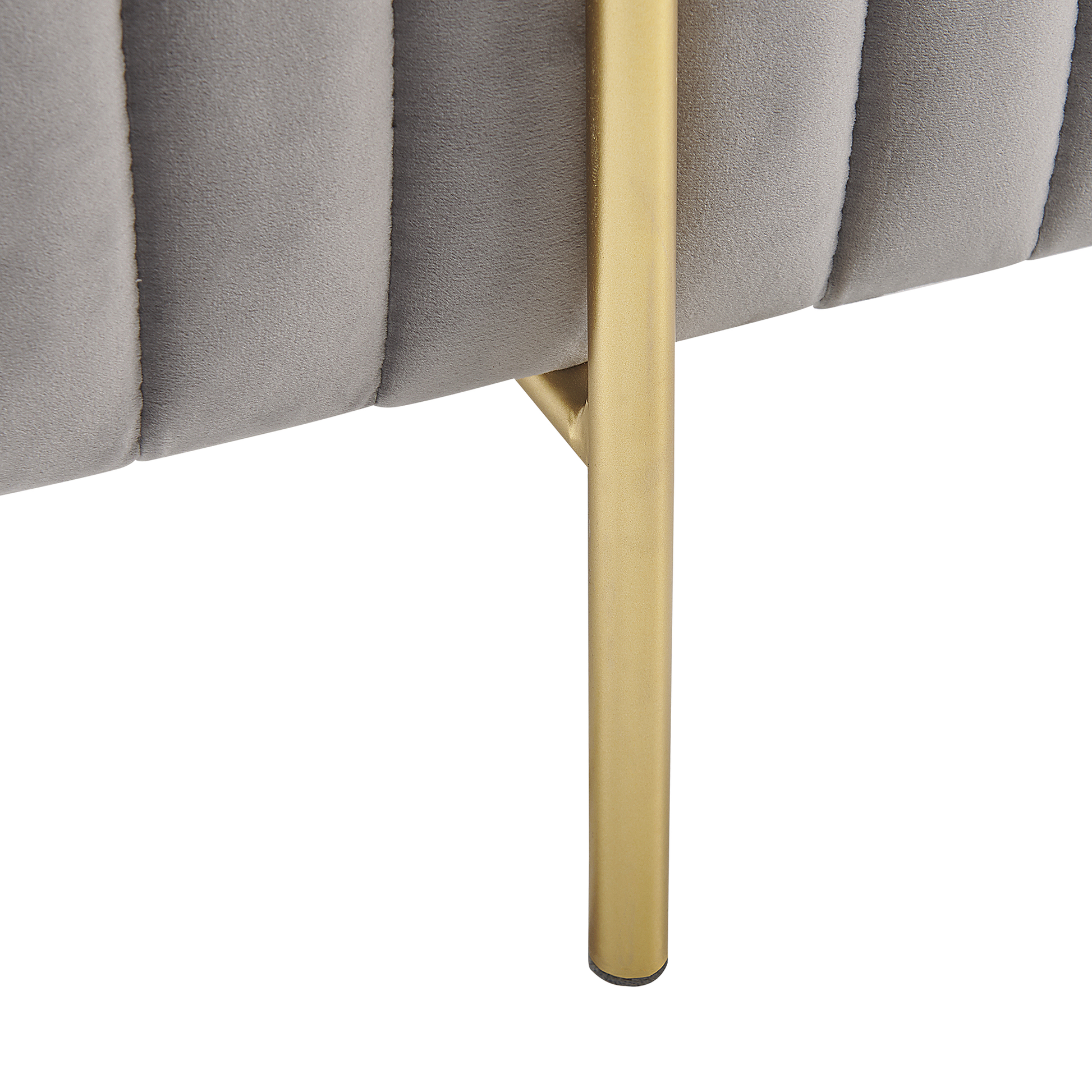 Diese gepolsterte Bank stellt ein ausgefallenes Statement-Stück dar, das sich in einfach jeder modernen Einrichtung beweisen wird. Sowohl der geschmeidige Samtbezug als auch die vertikalen Steppungen und goldenen Metallbeine unterstreichen den luxuriösen Look der gesamten Bettbank. Mit ihrer vielseitigen, rechteckigen Form kann sie in einem Flur, im Wohnzimmer oder am Fussende eines Bettes platziert oder auch als einzelnes Sitzmöbel genutzt werden. Material: Samtstoff. Zusätzliches Material: Metall, Schaumstoff. Material Zusammensetzung: 100% Polyester Gewicht: 10 Montage: Benötigt keine Montage Gewichtskapazität: 150 Polsterstärke: 28 Das Angebot beinhaltet: 1 x Bank Sitzfläche: 89x45 Höhe: 42 zusätzliche Information: Bitte beachten Sie, dass Samtstoff unter verschiedenen Lichtverhältnissen eine andere Optik haben kann – das Material schimmert bei Tageslicht stärker und wirkt bei künstlicher Beleuchtung in Innenräumen eher gedämpft. Aufgrund der glatten, hochdichten Struktur des Gewebes kann sein Farbton auch variieren, wenn man mit der Hand in verschiedene Richtungen und Winkel über den Stoff fährt. Um den Farbton auszugleichen und Druckstellen zu vermeiden, sollte der Webstoff sanft mit einer offenen Handfläche in eine Richtung gestrichen, mit einem feuchten Tuch abgewischt oder einem Dampfbügeleisen gebügelt werden. Gestalten: Rechteckig Breite: 93 Tiefe: 48 Art: Bank Stil: Glamourös Allgemeine Farbe: Grau Schatten: Hellgrau Hauptmaterial: Samtstoff