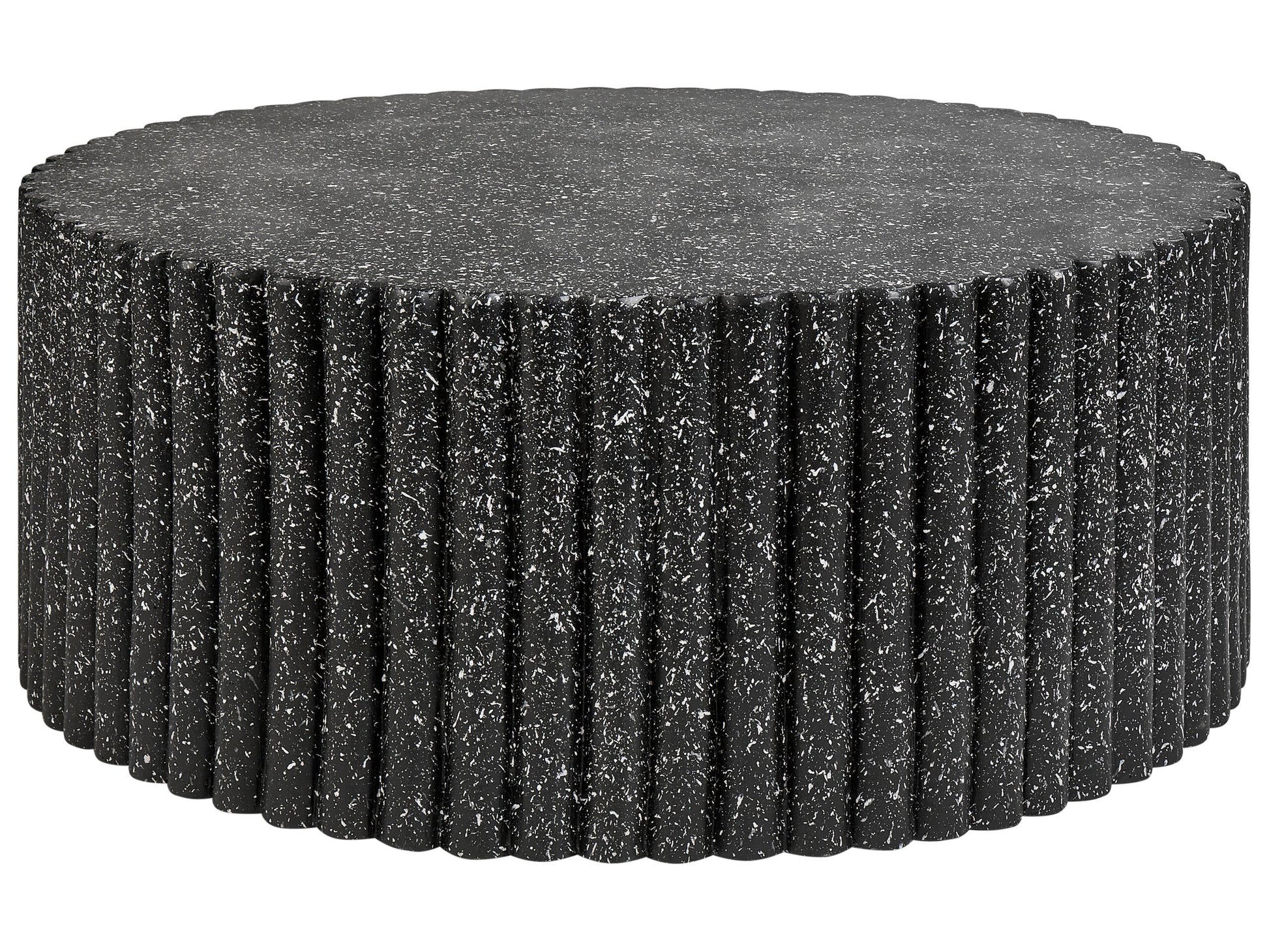 Der minimalistische Couchtisch überzeugt mit seiner Zylinderform und dem angesagten Lamellen-Design. Seine schwarze Farbe in Kombination mit der Terrazzo-Optik verleiht jedem Raum einen eleganten Touch. Gefertigt aus Materialien, die sowohl für den Innen- als auch für den Aussenbereich geeignet sind, ist dieser Tisch ein vielseitiges Möbelstück für jedes Zuhause.  Material: Leichtbeton (MgO). Zusätzliches Material: Glasfaser.  Gewicht: 44 Montage: Benötigt keine Montage Gewichtskapazität: 100 Das Angebot beinhaltet: 1 x Couchtisch Höhe: 42 zusätzliche Information: Da jedes Produkt handgefertigt wird, kann es zu kleineren Abweichungen in der Farbe und der äusseren Struktur kommen. Diese Abweichungen stellen keinen Qualitätsmangel dar, sondern sind eine warentypische Eigenschaft. Gestalten: Rund Breite: 106 Länge: 106 Art: Couchtisch Stil: Modern Allgemeine Farbe: Schwarz Schatten: Terrazzo Hauptmaterial: Leichtbeton (MgO)