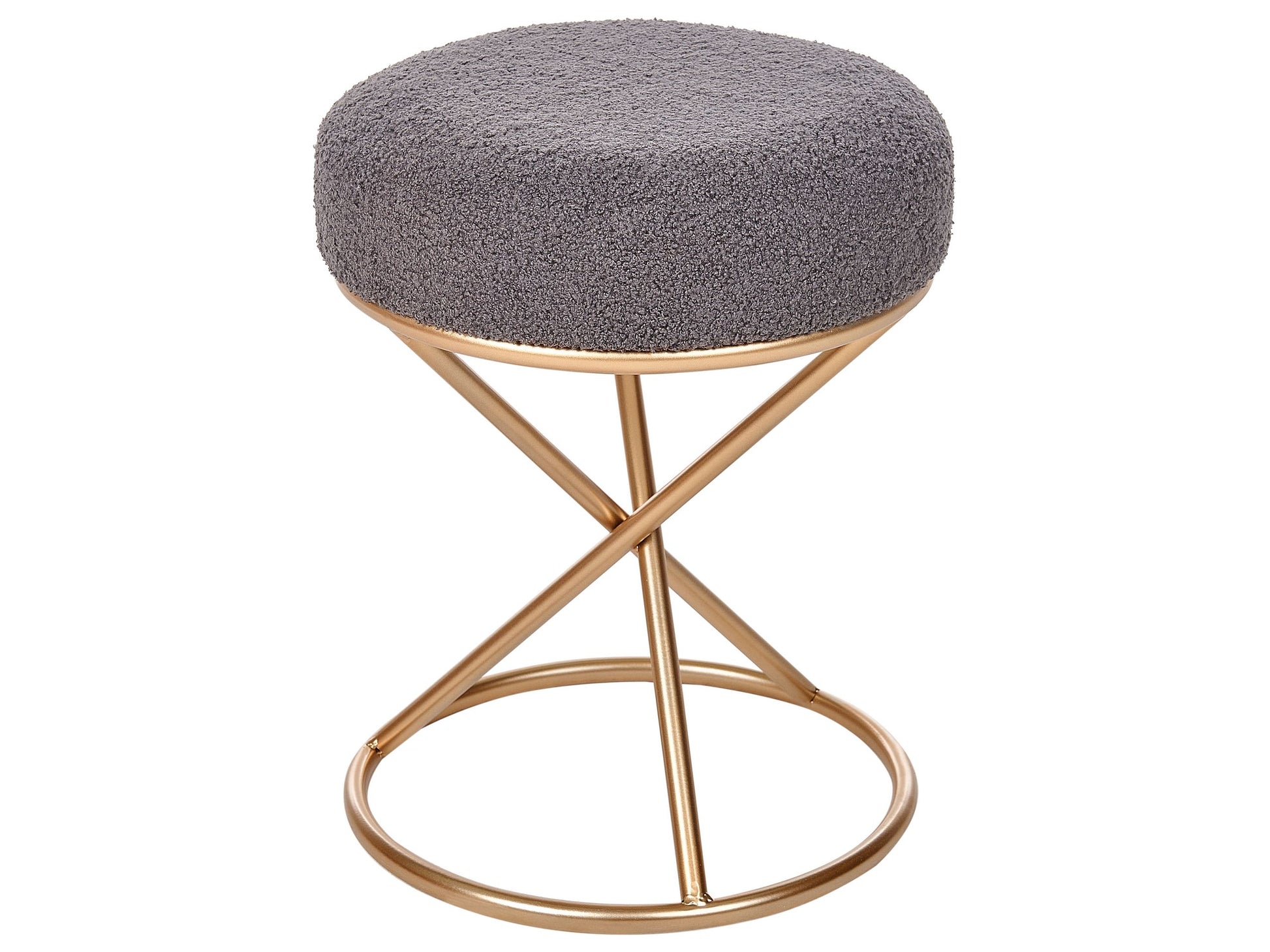 Verleihen Sie Ihrem Raum einen Hauch von Glamour mit diesem eleganten Hocker. Der weiche Bouclé-Sitz sorgt für gemütlichen Komfort, während die goldenen Beine eine stilvolle und stabile Basis bieten. Dieser dekorative, aber dennoch praktische Hocker ist ein schönes Akzentstück für jedes Wohnzimmer, Schlafzimmer oder den Flur.  Material: Bouclé. Zusätzliches Material: Eisen, Kiefernholz.  Material Zusammensetzung: 100% Polyester Gewicht: 3 Montage: Benötigt keine Montage Holzart: Pinus massoniana Holzursprung: Kanada Gewichtskapazität: 180 Beine Höhe: 34 Das Angebot beinhaltet: 1 x Hocker Sitzfläche: 32x32 Höhe: 45 Gestalten: Rund Breite: 35 Tiefe: 35 Art: Hocker Stil: Glamourös Allgemeine Farbe: Grau Muster: Ohne Muster Hauptmaterial: Bouclé Füllmaterial: Schaumstoff