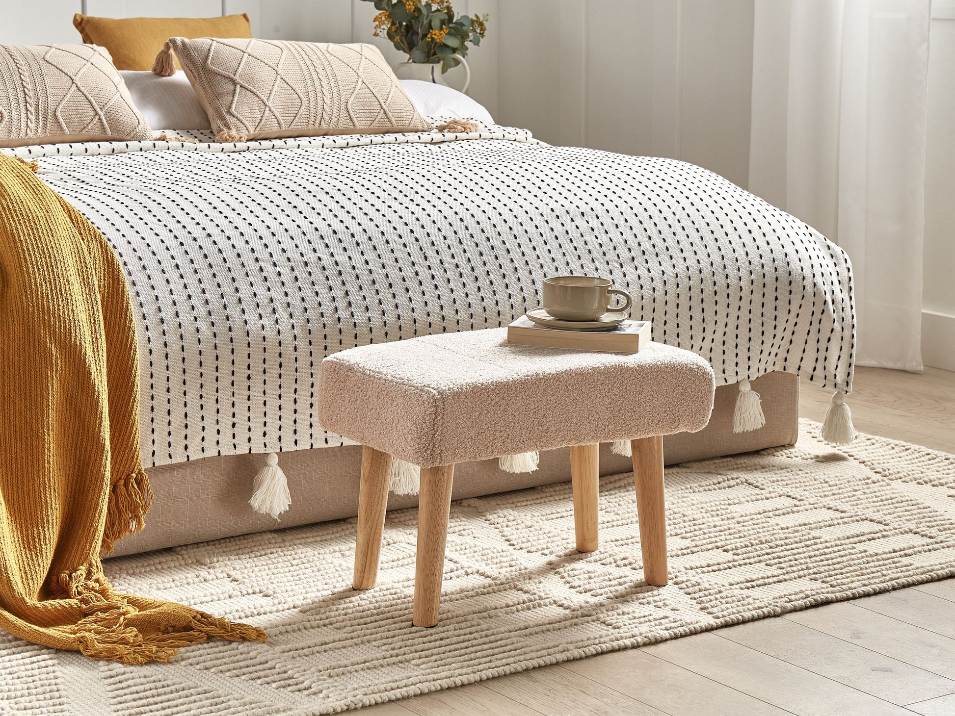 Hocker Bouclé / Gummibaumholz beige TAKOMA