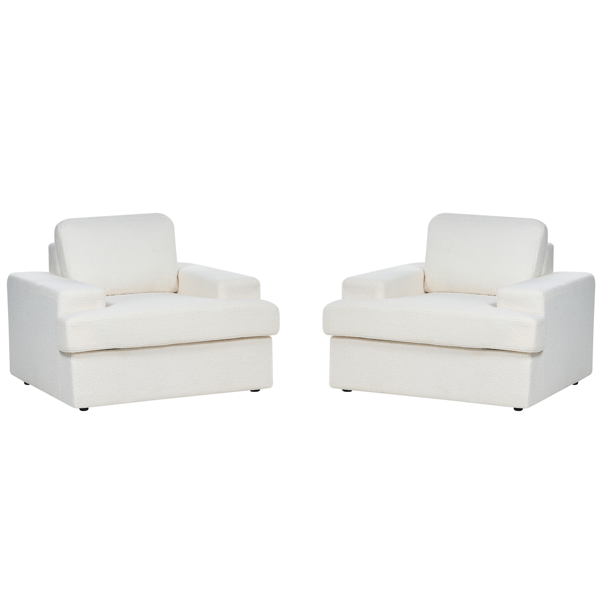 Descrizione: Ergänzen Sie Ihr Wohnzimmer mit diesen klassischen Sesseln, die sich einfach in jedem Wohnstil zurechtfinden. Beide Wohnzimmersessel sind mit strapazierfähigen Stoffbezügen aus strukturiertem Bouclé umhüllt, so sind sie nicht nur pflegeleicht und langlebig, sondern auch sehr vielseitig, da sie dank des Rundumbezugs frei im Raum platziert werden können. Die robusten Holzkonstruktionen sorgen für eine angemessene Stabilität, und die dicken Kissen lassen Sie in einem herrlichen Komfort versinken. Die Lesesessel zeichnen sich zusätzlich mit ihren breiten Armlehnen und ihren bequemen Sitzhöhen sowie ihren grosszügigen Sitzflächen aus, auf denen Sie sich wohlig entspannen können. Material: Bouclé. Zusätzliches Material: Sperrholz, Schaumstoff, Eukalyptus, Kunststoff. Material Zusammensetzung: 100% Polyester Gewicht: 34 Montage: Teilweise montiert Holzart: Eucalyptus grandis Holzursprung: China Gewichtskapazität: 200 Polsterstärke: 19 Sitzhöhe: 48 Das Angebot beinhaltet: 2 x Sessel Sitzfläche: 108x66 Höhe: 85 zusätzliche Information: Um sicherzustellen, dass die Konstruktion stabil und die Nutzungssicherheit gewährleistet ist, sollte man 2 Wochen nach dem Zusammenbau überprüfen, ob die Ware auch korrekt montiert wurde. Ausserdem ist alle 3 Monate zu prüfen, ob die Schrauben richtig festgezogen sind. Breite: 108 Tiefe: 103 Art: Sessel Stil: Klassisch Allgemeine Farbe: Weiss Schatten: Cremeweiss Muster: Ohne Muster Hauptmaterial: Bouclé Füllmaterial: Schaumstoff Arm Stil: Gerade