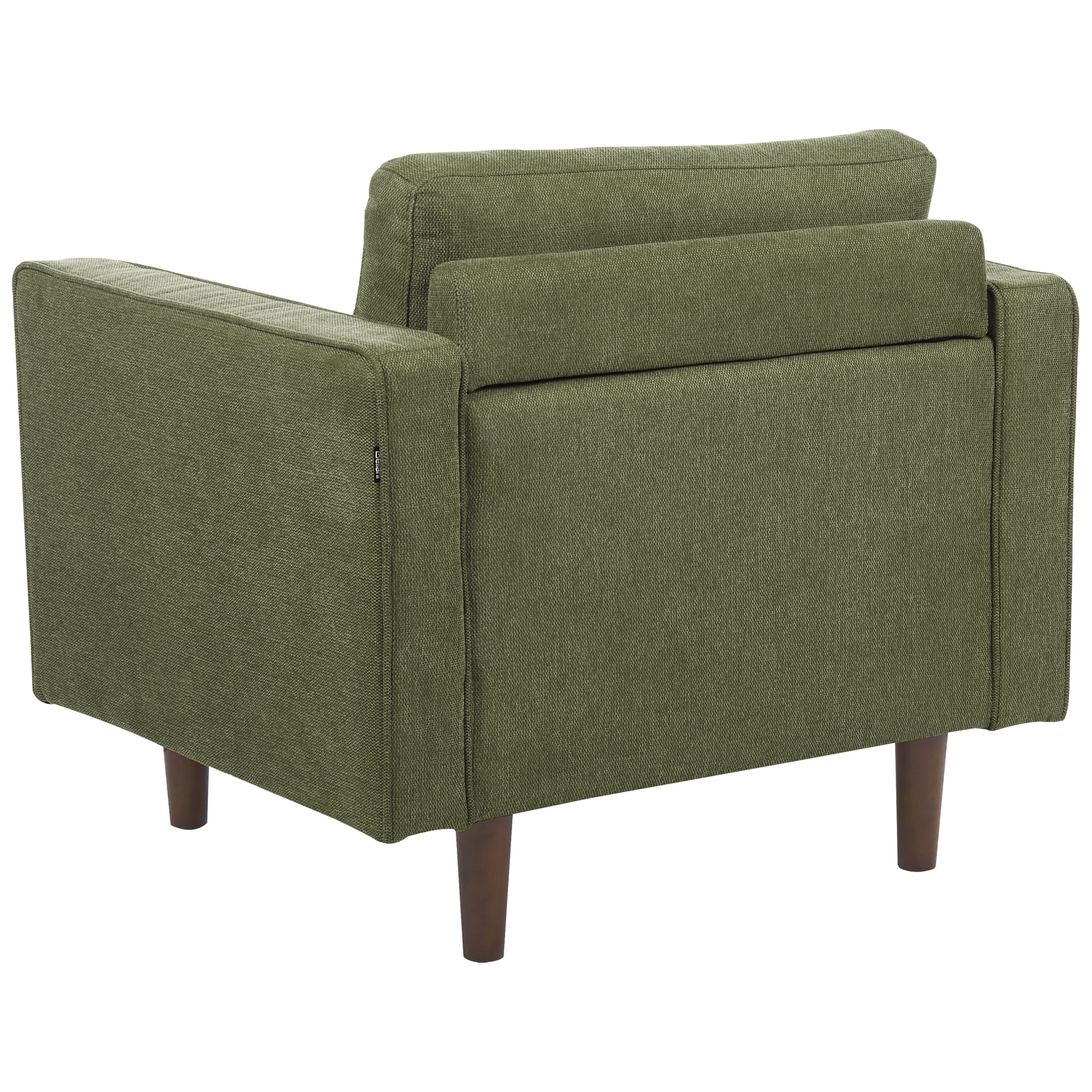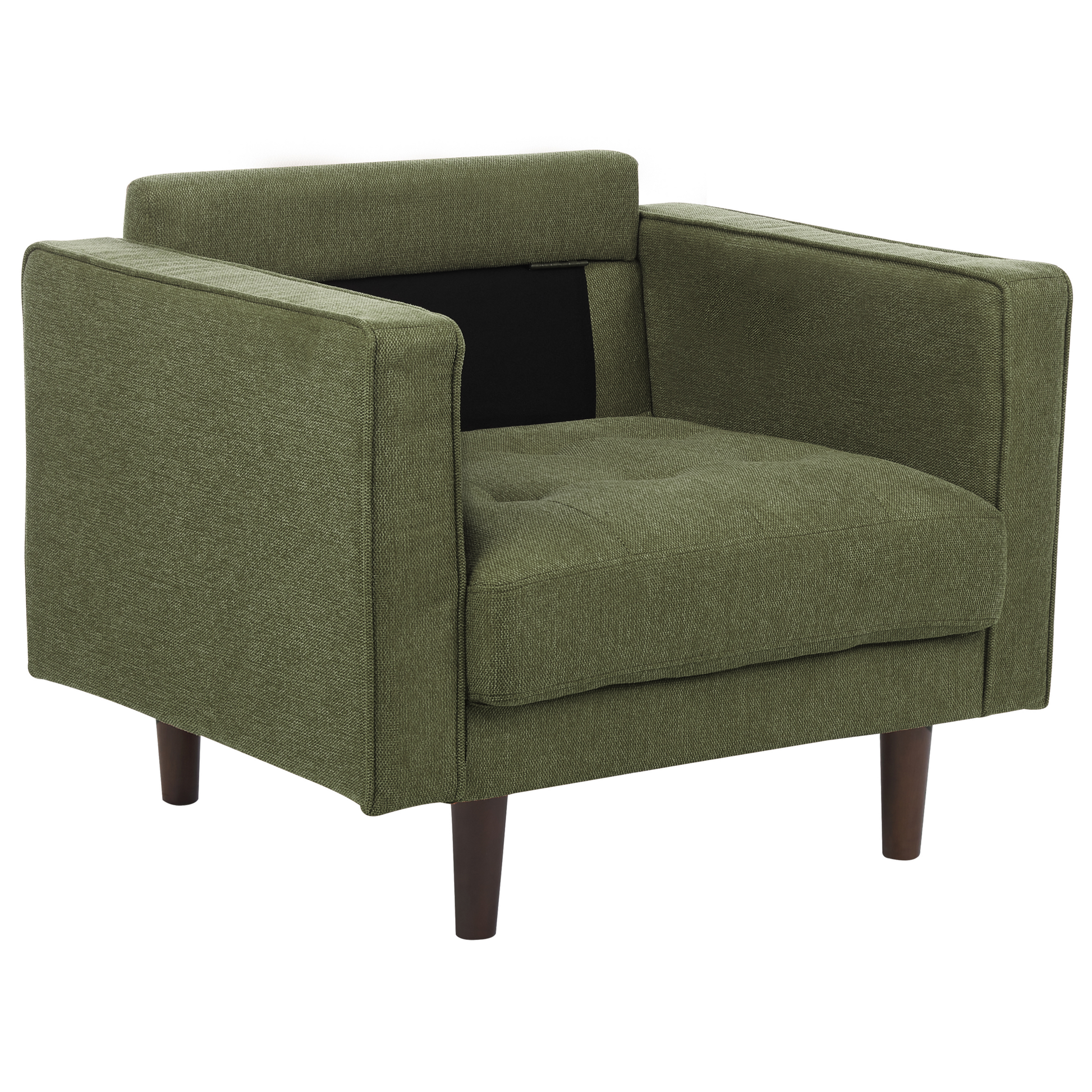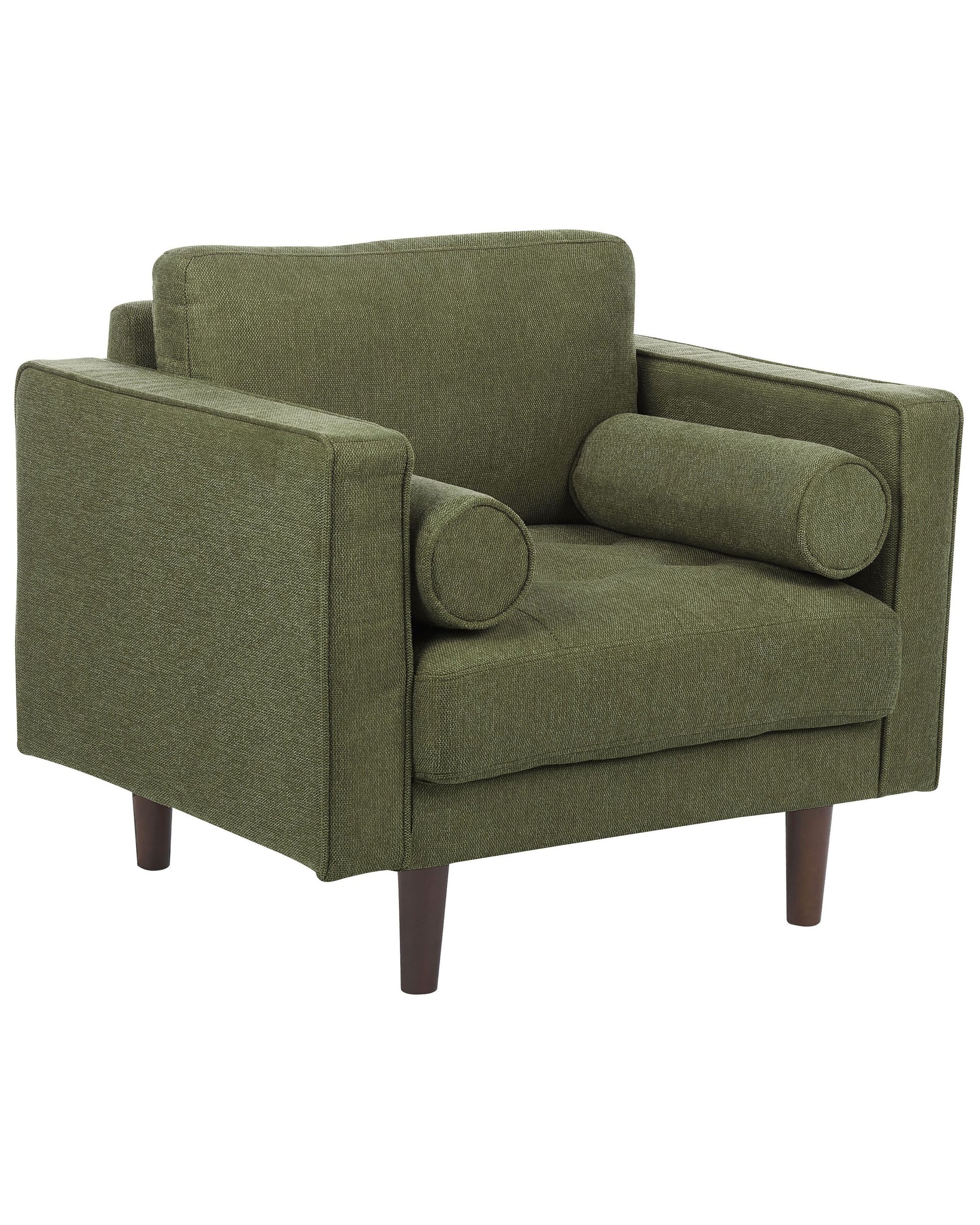 Descrizione: Dieser Stoffsessel lässt mit seinem zeitlosen Retro-Design besondere Gemütlichkeit in Ihrem Wohnzimmer aufkommen. Mit seinem strapazierfähigen Stoffbezug und seinen schmalen Beinen aus Gummibaumholz strahlt er nicht nur Stil aus, sondern verspricht auch Langlebigkeit und Robustheit. Die dicken Sitz- und Rückenkissen sind mit praktischen Klettverschlüssen für einen sicheren Halt ausgestattet. Die weichen Sitzpolster und hohen Armlehnen sorgen für einen optimalen Sitzkomfort, während die zusätzlichen Nackenrollen das Sitzerlebnis noch um einiges erhöhen. Zudem verfügen die Kissen über abnehmbare Hüllen, die Ihnen die Instandhaltung des Wohnzimmersessels erleichtern. Material: Polyester. Zusätzliches Material: Eukalyptus, Gummibaumholz, Sperrholz. Material Zusammensetzung: 100% Polyester Gewicht: 20 Montage: Beine / Füsse nicht montiert Holzart: Eucalypteae Holzursprung: China Gewichtskapazität: 120 Kissen Abmessungen: 47x14 Polsterstärke: 19 Sitzhöhe: 45 Das Angebot beinhaltet: 1 x Sessel, 2 x Zierkissen Sitzfläche: 50x65 Höhe: 78 zusätzliche Information: Um sicherzustellen, dass die Konstruktion stabil und die Nutzungssicherheit gewährleistet ist, sollte man 2 Wochen nach dem Zusammenbau überprüfen, ob die Ware auch korrekt montiert wurde. Ausserdem ist alle 3 Monate zu prüfen, ob die Schrauben richtig festgezogen sind. Breite: 86 Tiefe: 74 Art: Sessel Stil: Retro Allgemeine Farbe: Grün Schatten: Dunkelgrün Muster: Ohne Muster Hauptmaterial: Polyester Füllmaterial: Schaumstoff Arm Stil: Gerade