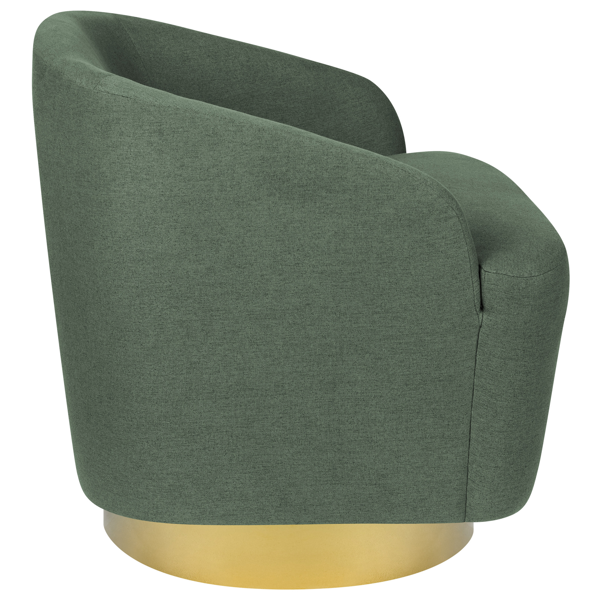 Dieser stilvolle Retro-Sessel ist ein echter Hingucker in jedem Wohnzimmer und wird schnell zu einem Lieblingsplatz zum Entspannen. Er ist mit hochwertigem, grünem Stoff gepolstert, der sehr weich ist und eine einzigartige, angenehme Textur bietet. Das Möbelstück verfügt ausserdem über einen goldenen Sockel, der als Drehpunkt dient und somit das Umstellen des Sessels erspart, wenn man seine Sitzposition ändern möchte. Material: Polyester. Zusätzliches Material: Eukalyptus, Sperrholz, Metall. Material Zusammensetzung: 100% Polyester Gewicht: 20 Montage: Benötigt keine Montage Holzart: Eucalyptus grandis Holzursprung: China Gewichtskapazität: 150 Polsterstärke: 38 Sitzhöhe: 47 Das Angebot beinhaltet: 1 x Sessel Sitzfläche: 54x59 Höhe: 71 Breite: 73 Tiefe: 70 Art: Drehsessel Stil: Retro Allgemeine Farbe: Grün Muster: Ohne Muster Hauptmaterial: Polyester Füllmaterial: Schaumstoff Arm Stil: Abgesenkt
