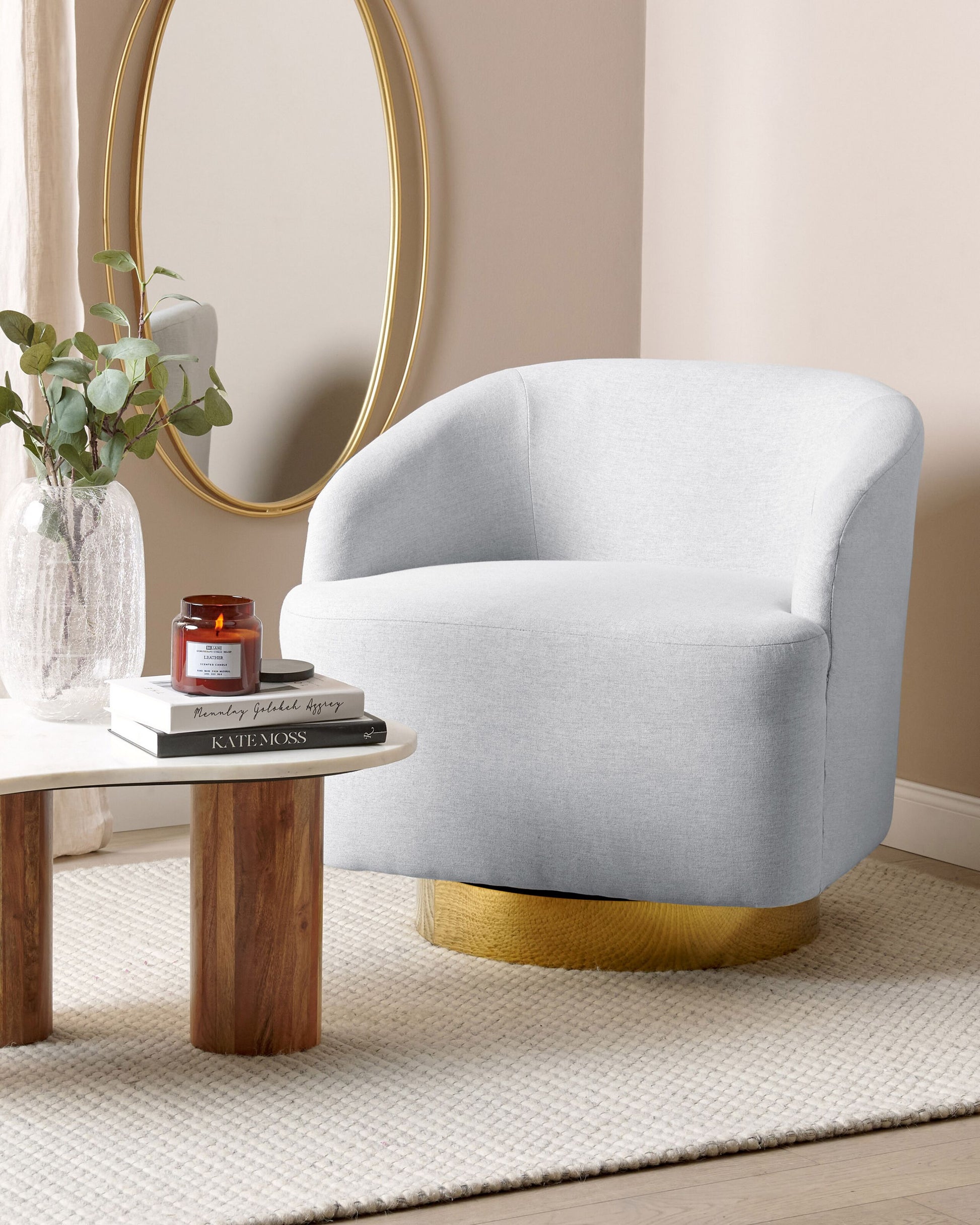 Dieser stilvolle Retro-Sessel ist ein echter Hingucker in jedem Wohnzimmer und wird schnell zu einem Lieblingsplatz zum Entspannen. Er ist mit hochwertigem, hellgrauem Stoff gepolstert, der sehr weich ist und eine einzigartige, angenehme Textur bietet. Das Möbelstück verfügt ausserdem über einen goldenen Sockel, der als Drehpunkt dient und somit das Umstellen des Sessels erspart, wenn man seine Sitzposition ändern möchte. Material: Polyester. Zusätzliches Material: Eukalyptus, Sperrholz, Metall. Material Zusammensetzung: 100% Polyester Gewicht: 20 Montage: Benötigt keine Montage Holzart: Eucalyptus grandis Holzursprung: China Gewichtskapazität: 150 Polsterstärke: 38 Sitzhöhe: 47 Das Angebot beinhaltet: 1 x Sessel Sitzfläche: 54x59 Höhe: 71 Breite: 73 Tiefe: 70 Art: Drehsessel Stil: Retro Allgemeine Farbe: Grau Schatten: Hellgrau Muster: Ohne Muster Hauptmaterial: Polyester Füllmaterial: Schaumstoff Arm Stil: Abgesenkt