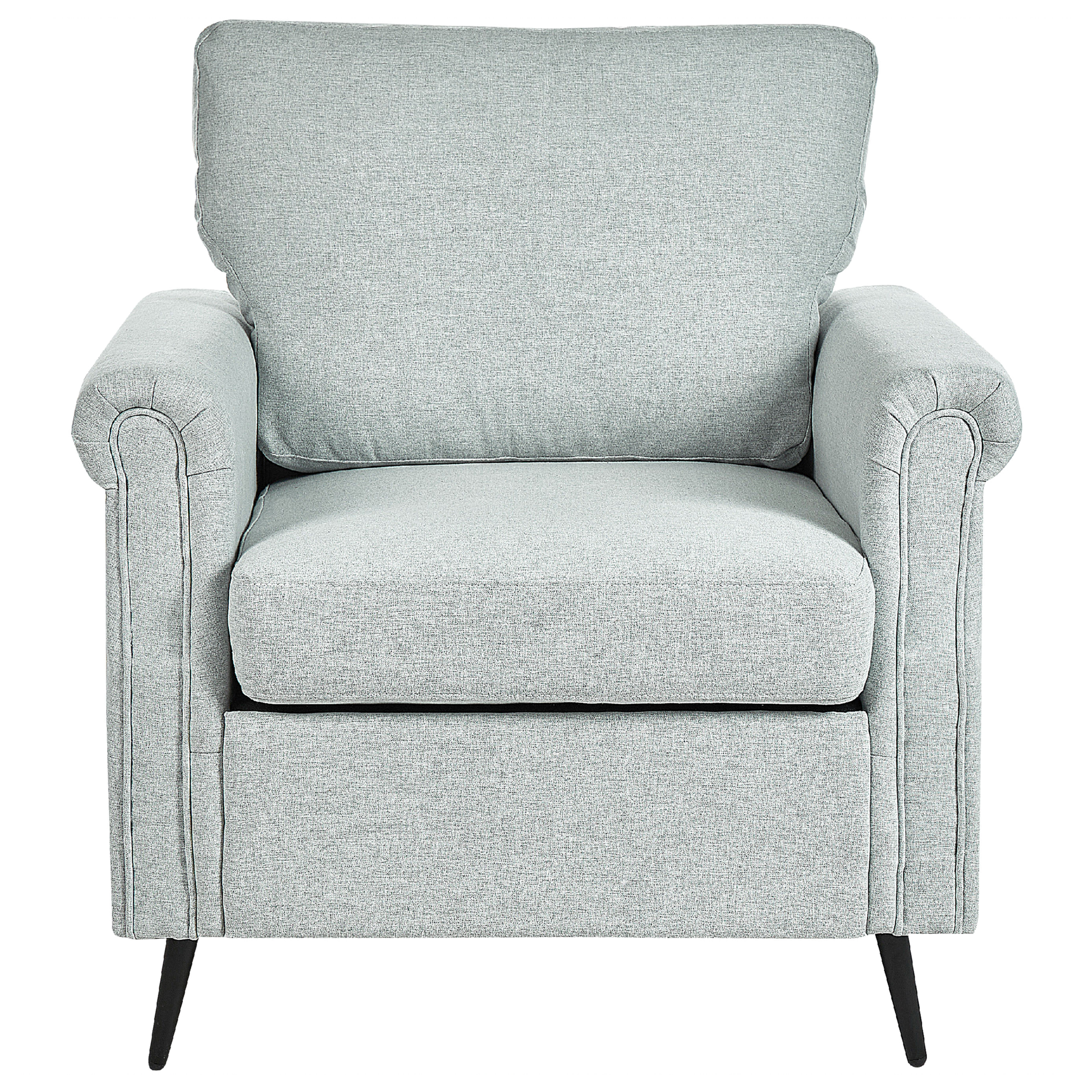 Elegante Ausstrahlung trifft auf hohen Sitzkomfort! Dieser stilvolle Stoffsessel ist das perfekte Möbelstück für alle, die es gerne bequem und stilvoll haben. Sein eleganter, strapazierfähiger Stoffbezug, die schlanken Metallbeine und die Holzkonstruktion sind eine Garantie für jahrelange Qualität. Die dick gepolsterten Kissen verleihen dem Sessel Gemütlichkeit und die abnehmbaren Hüllen sorgen für eine einfache Pflege. Material: Polyester. Zusätzliches Material: Eisen, Eukalyptus, Sperrholz. Material Zusammensetzung: 100% Polyester Gewicht: 22 Montage: Teilweise montiert Holzart: Eucalyptus Globulus Holzursprung: China Gewichtskapazität: 150 Kissen Abmessungen: 65x45 Polsterstärke: 10 Sitzhöhe: 46 Das Angebot beinhaltet: 1 x Sessel Sitzfläche: 54x49 Höhe: 88 zusätzliche Information: Um sicherzustellen, dass die Konstruktion stabil und die Nutzungssicherheit gewährleistet ist, sollte man 2 Wochen nach dem Zusammenbau überprüfen, ob die Ware auch korrekt montiert wurde. Ausserdem ist alle 3 Monate zu prüfen, ob die Schrauben richtig festgezogen sind. Breite: 85 Tiefe: 67 Art: Sessel Stil: Retro Allgemeine Farbe: Grau Schatten: Hellgrau Muster: Ohne Muster Hauptmaterial: Polyester Füllmaterial: Schaumstoff Arm Stil: Abgerundet