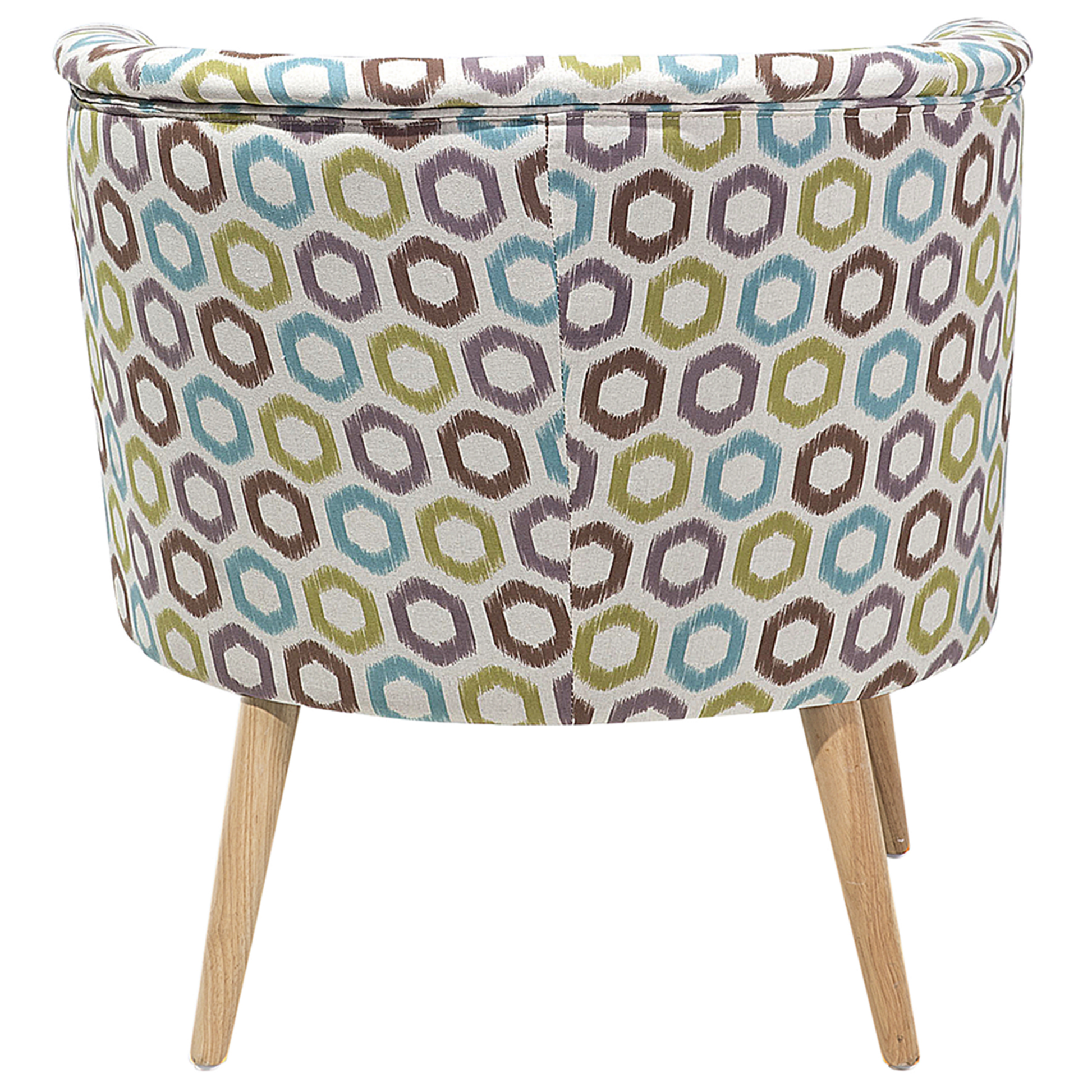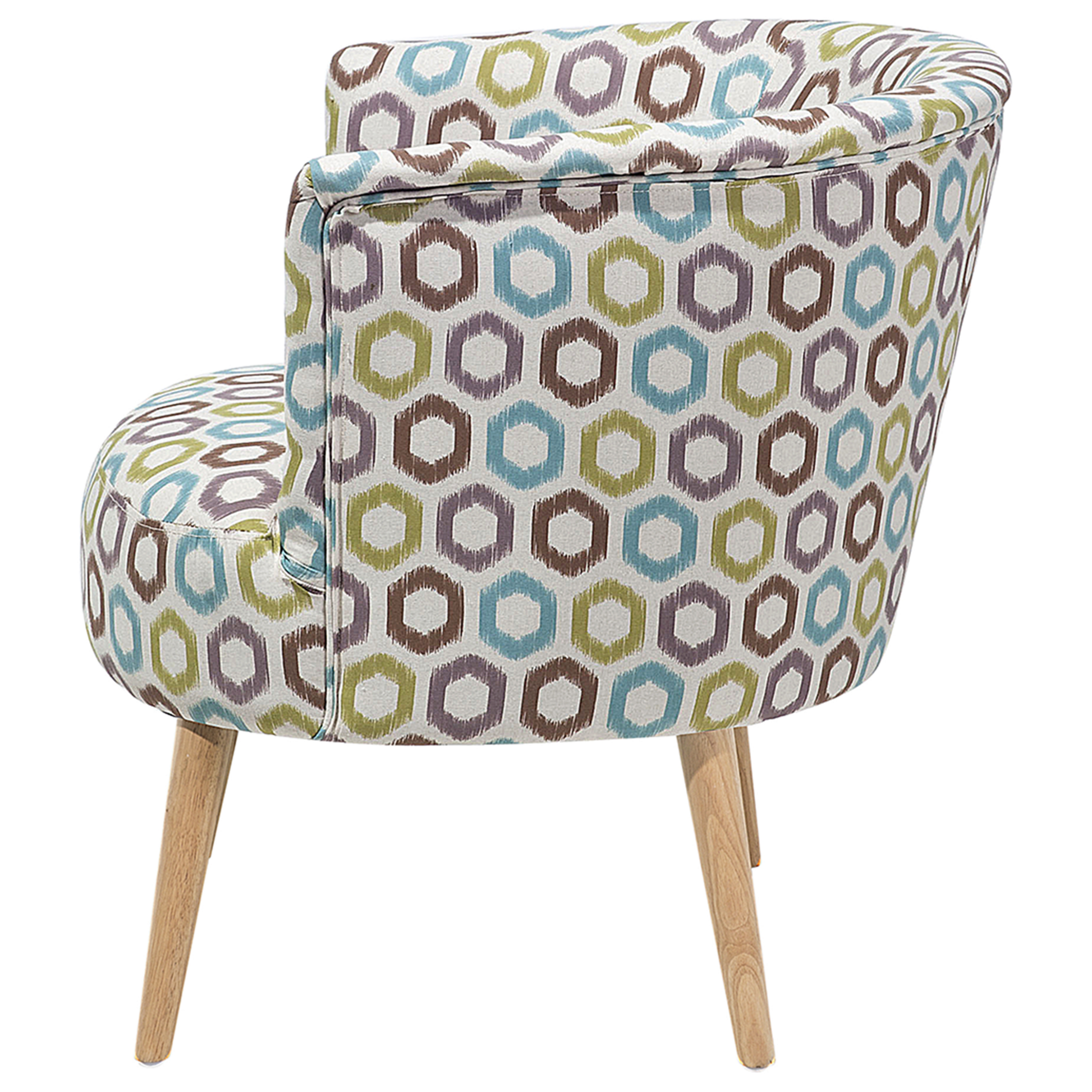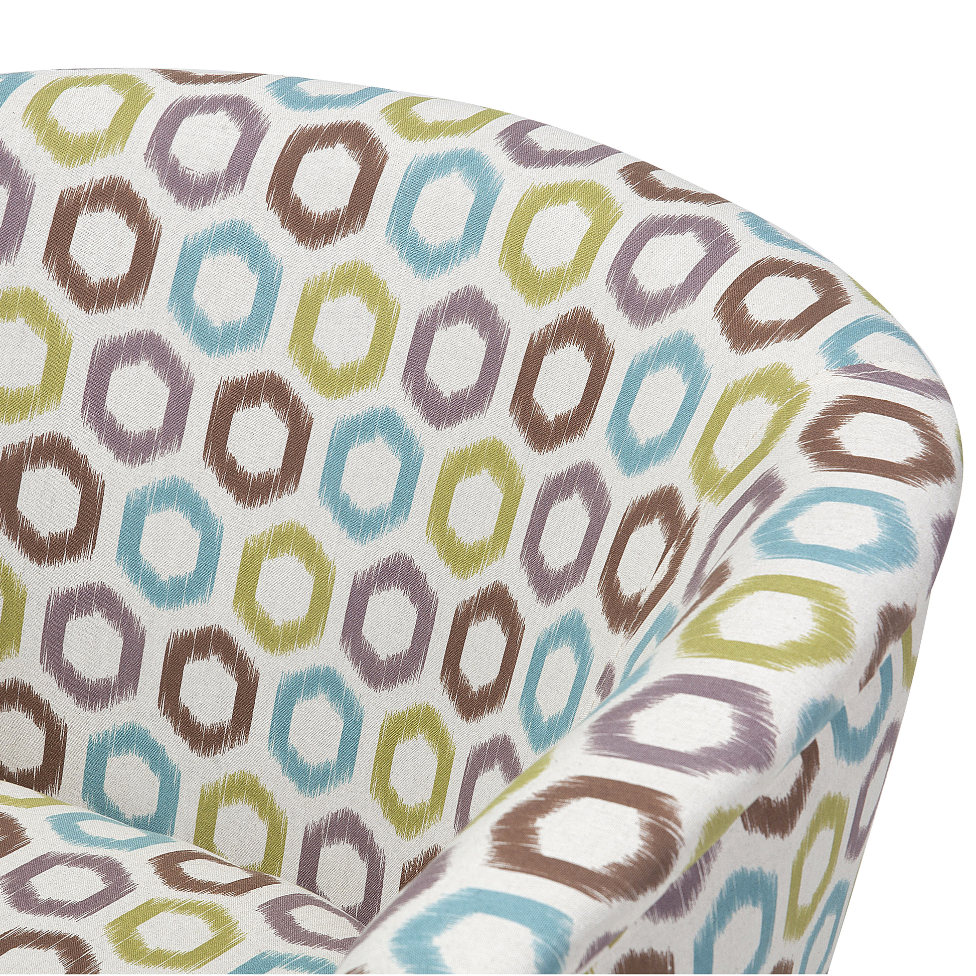 Dieser wunderschöne Sessel mit seinem Muster aus fröhlichen, bunten geometrichen Formen auf einem hellen Hintergrund ist ein richtiges Schmuckstück. Eine bequeme, breite Sitzfläche und eine komfortabel geformte Rückenlehne in einer angenehmen Höhe laden zum Entspannen ein. Die schlanken Beine aus sehr stabilem Gummibaumholz verleihen dem Sessel Stabilität. Der dekorative Bezug ist aus strapazierfähigem, pflegeleichtem Polyester gefertigt. Material: Polyester. Zusätzliches Material: Gummibaumholz. Material Zusammensetzung: 100% Polyester Gewicht: 13 Montage: Beine / Füsse nicht montiert Gewichtskapazität: 160 Polsterstärke: 19 Sitzhöhe: 45 Das Angebot beinhaltet: 1 x Sessel Sitzfläche: 63x53 Höhe: 74 zusätzliche Information: Um sicherzustellen, dass die Konstruktion stabil und die Nutzungssicherheit gewährleistet ist, sollte man 2 Wochen nach dem Zusammenbau überprüfen, ob die Ware auch korrekt montiert wurde. Ausserdem ist alle 3 Monate zu prüfen, ob die Schrauben richtig festgezogen sind. Breite: 72 Tiefe: 73 Art: Sessel Stil: Modern Allgemeine Farbe: Bunt Schatten: Türkis Muster: Geometrisches Muster Hauptmaterial: Polyester Füllmaterial: Schaumstoff Arm Stil: Abgesenkt