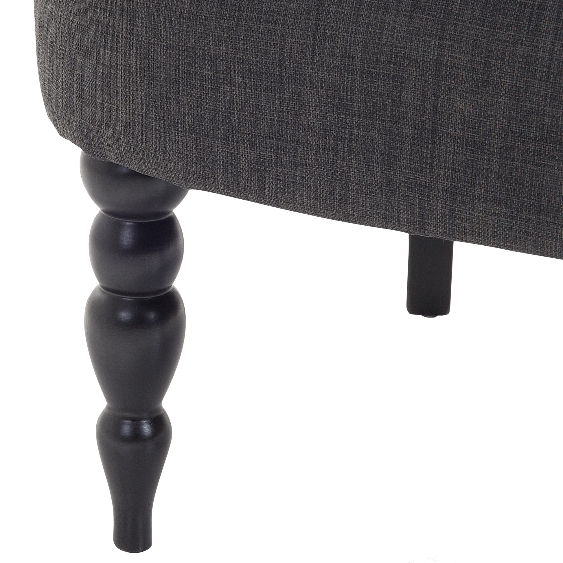 Der Polstersessel ist mit hochwertigem, dunkelgrauem Polyester bezogen und verfügt an der Rückenlehne über eine klassische Knopfverzierung, welche ihm ein elegantes Aussehen verleiht. Die vorderen, schmal zulaufenden Beine haben eine wunderschöne, gedrechselte Form, während die hinteren Beine glatt sind und leicht schräg stehen. Der Loungesessel verleiht jedem Raum eine gemütliche, behagliche und elegante Atmosphäre.   Material: Polyester. Zusätzliches Material: Birkenholz.  Material Zusammensetzung: 100% Polyester Gewicht: 13 Montage: Beine / Füsse nicht montiert Holzart: Betula chinensis Holzursprung: China Gewichtskapazität: 150 Polsterstärke: 16 Sitzhöhe: 44 Das Angebot beinhaltet: 1 x Sessel Sitzfläche: 59x47 Höhe: 85 zusätzliche Information: Um sicherzustellen, dass die Konstruktion stabil und die Nutzungssicherheit gewährleistet ist, sollte man 2 Wochen nach dem Zusammenbau überprüfen, ob die Ware auch korrekt montiert wurde. Ausserdem ist alle 3 Monate zu prüfen, ob die Schrauben richtig festgezogen sind. Breite: 59 Tiefe: 65 Art: Sessel Stil: Retro Allgemeine Farbe: Grau Schatten: Dunkelgrau Muster: Ohne Muster Hauptmaterial: Polyester Füllmaterial: Schaumstoff Arm Stil: Gerade