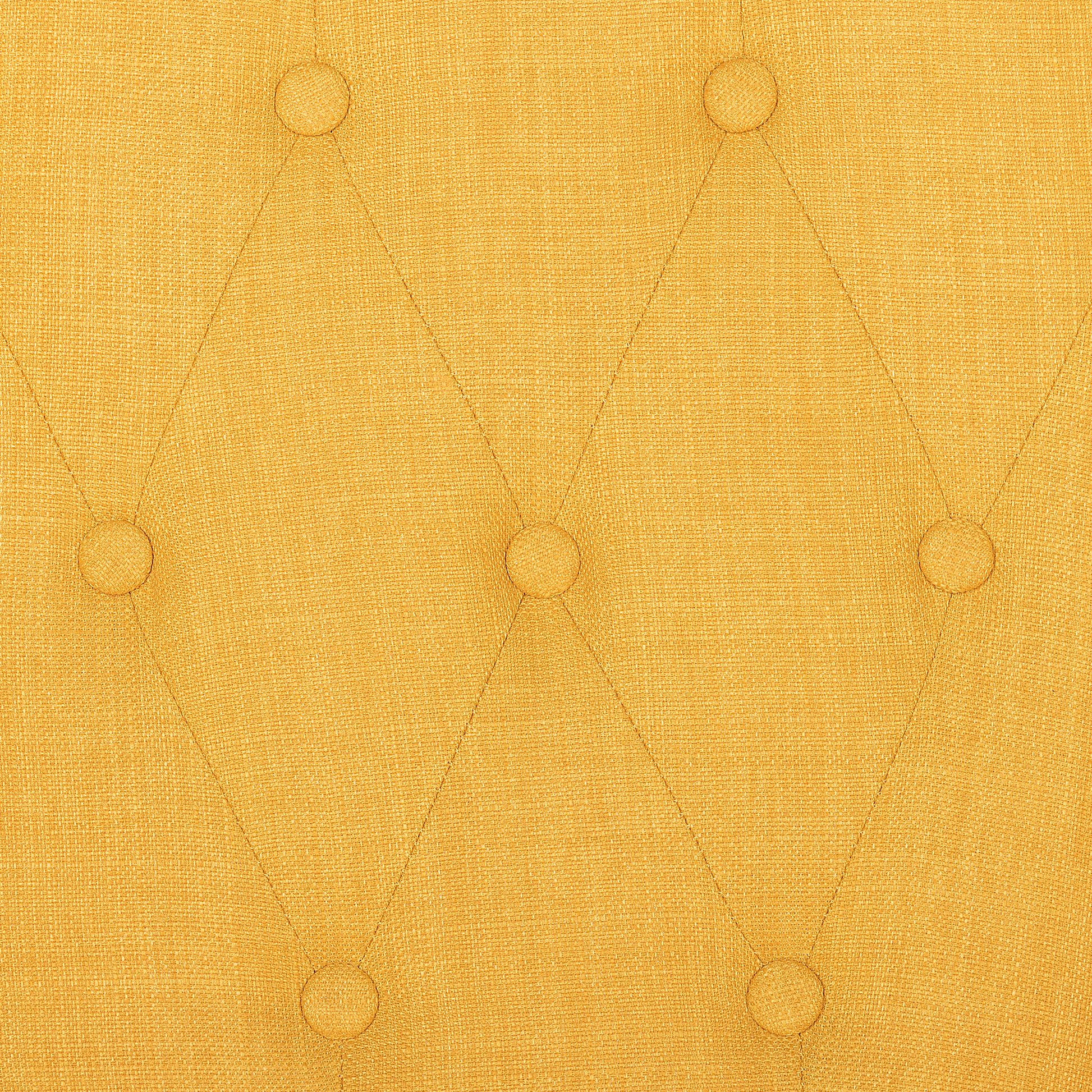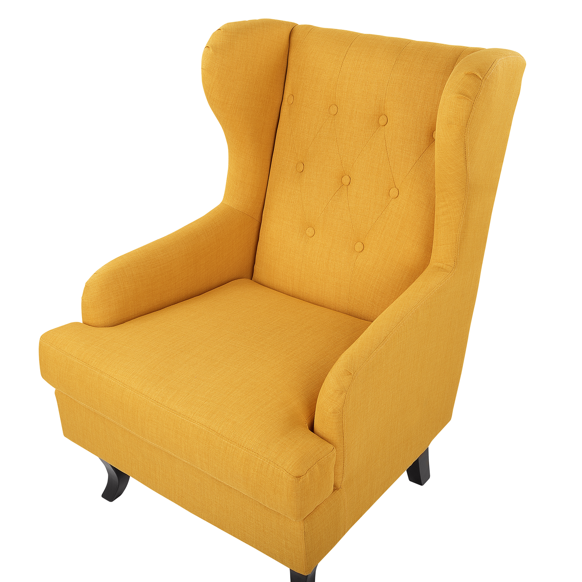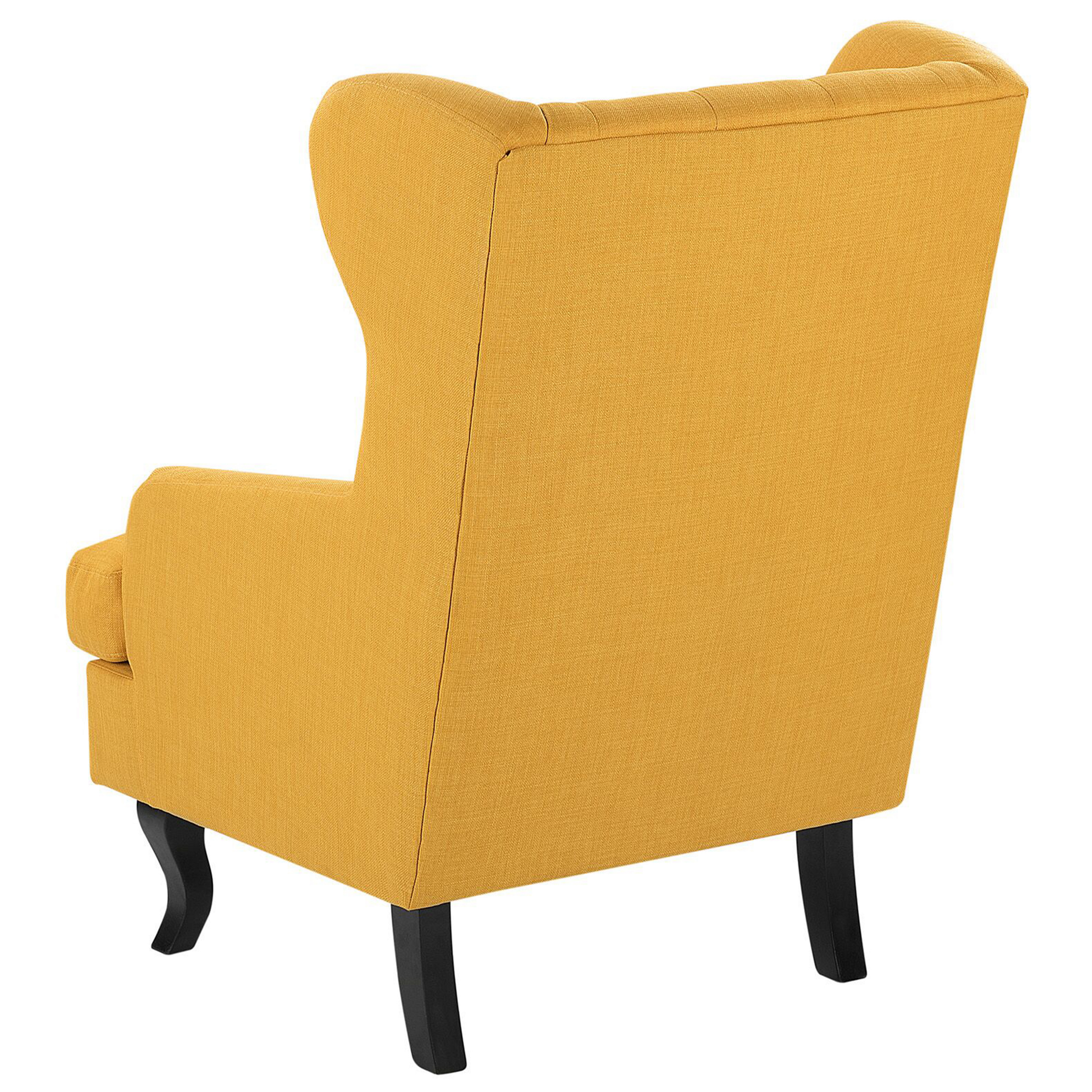Mit seinem opulenten Erscheinungsbild ist unser Sessel nicht zu übersehen. Ob als Lesesessel oder Fernsehsessel – dieser gemütliche Ohrenbackensessel überzeugt durch seine bequeme Sitzhöhe und leicht geneigte Rückenlehne. Die geschwungenen und dunklen Holzbeine sowie die lange Rückenlehne verleihen dem gelben Salonsessel etwas Majestätisches. Die gezielt platzierten Knopf-Verzierungen, an der Rückenlehne, runden das edle Design des Stoffsessels ab. Material: Polyester. Zusätzliches Material: Gummibaumholz. Material Zusammensetzung: 100% Polyester Gewicht: 19 Montage: Beine / Füsse nicht montiert Holzart: Hevea brasiliensis Holzursprung: China Gewichtskapazität: 150 Polsterstärke: 10 Sitzhöhe: 43 Das Angebot beinhaltet: 1 x Sessel Sitzfläche: 72x54 Höhe: 102 zusätzliche Information: Um sicherzustellen, dass die Konstruktion stabil und die Nutzungssicherheit gewährleistet ist, sollte man 2 Wochen nach dem Zusammenbau überprüfen, ob die Ware auch korrekt montiert wurde. Ausserdem ist alle 3 Monate zu prüfen, ob die Schrauben richtig festgezogen sind. Breite: 72 Tiefe: 78 Art: Ohrensessel Stil: Retro Allgemeine Farbe: Gelb Muster: Ohne Muster Hauptmaterial: Polyester Füllmaterial: Schaumstoff Arm Stil: Abgesenkt