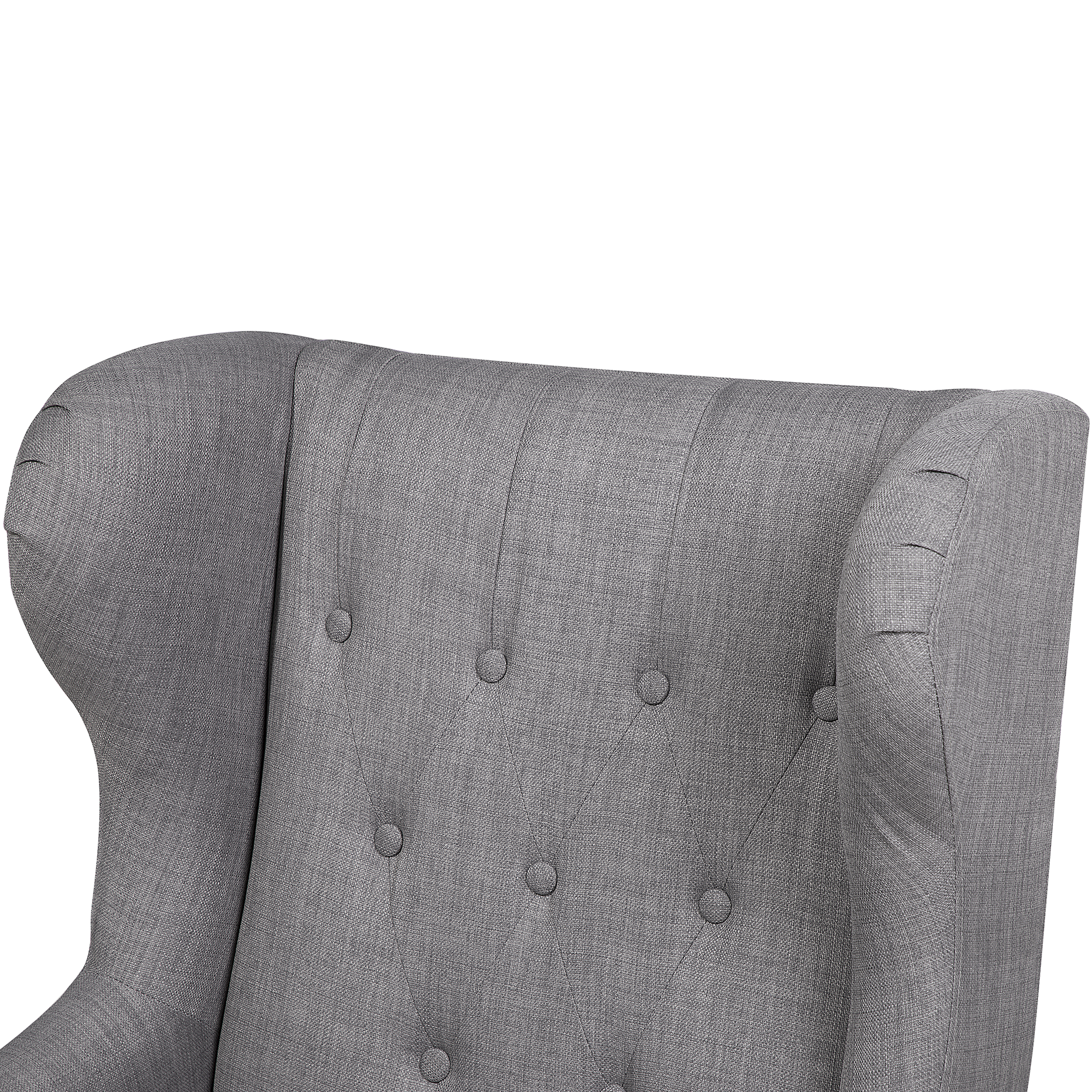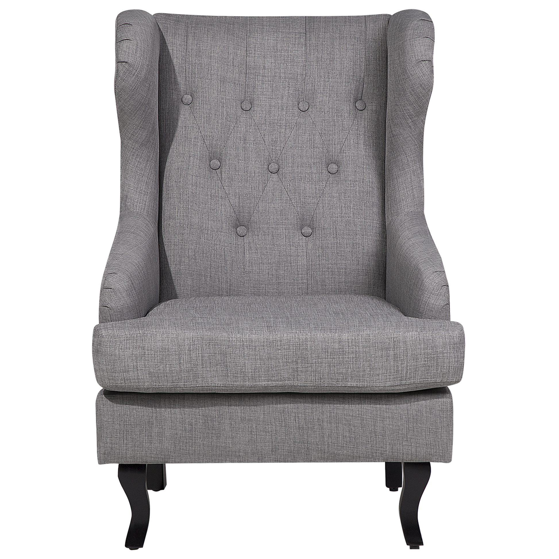Mit seinem opulenten Erscheinungsbild ist unser Sessel nicht zu übersehen. Ob als Lesesessel oder Fernsehsessel – dieser gemütliche Ohrenbackensessel überzeugt durch seine bequeme Sitzhöhe und leicht geneigte Rückenlehne. Die geschwungenen und dunklen Holzbeine sowie die lange Rückenlehne verleihen dem grauen Salonsessel etwas Majestätisches. Die gezielt platzierten Knopf-Verzierungen, an der Rückenlehne, runden das edle Design des Stoffsessels ab.  Material: Polyester. Zusätzliches Material: Gummibaumholz.  Material Zusammensetzung: 100% Polyester Gewicht: 19 Montage: Beine / Füsse nicht montiert Holzart: Hevea brasiliensis Holzursprung: China Gewichtskapazität: 150 Polsterstärke: 12 Sitzhöhe: 46 Das Angebot beinhaltet: 1 x Sessel Sitzfläche: 72x54 Höhe: 100 zusätzliche Information: Um sicherzustellen, dass die Konstruktion stabil und die Nutzungssicherheit gewährleistet ist, sollte man 2 Wochen nach dem Zusammenbau überprüfen, ob die Ware auch korrekt montiert wurde. Ausserdem ist alle 3 Monate zu prüfen, ob die Schrauben richtig festgezogen sind. Breite: 72 Tiefe: 78 Art: Ohrensessel Stil: Retro Allgemeine Farbe: Grau Muster: Ohne Muster Hauptmaterial: Polyester Füllmaterial: Schaumstoff Arm Stil: Abgesenkt