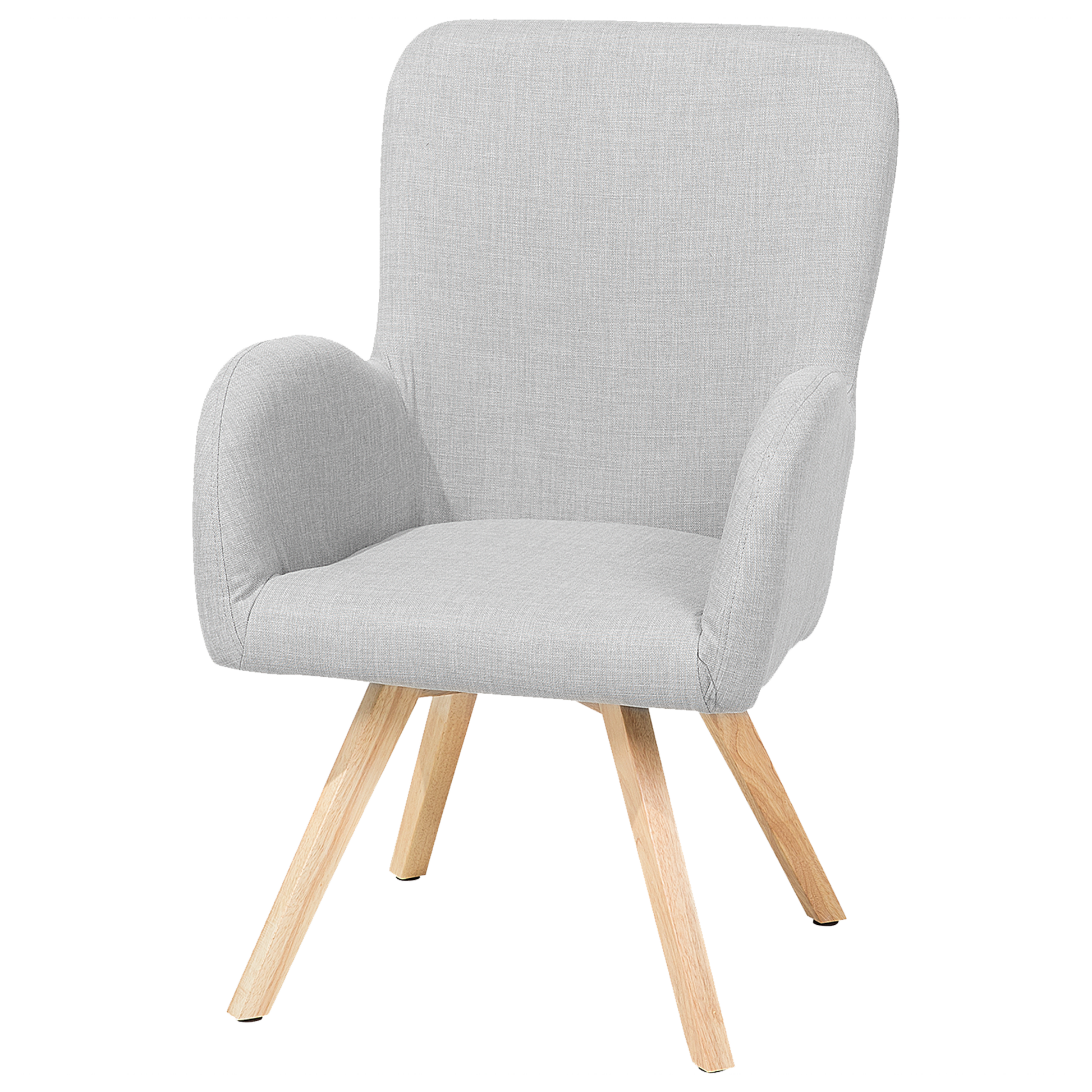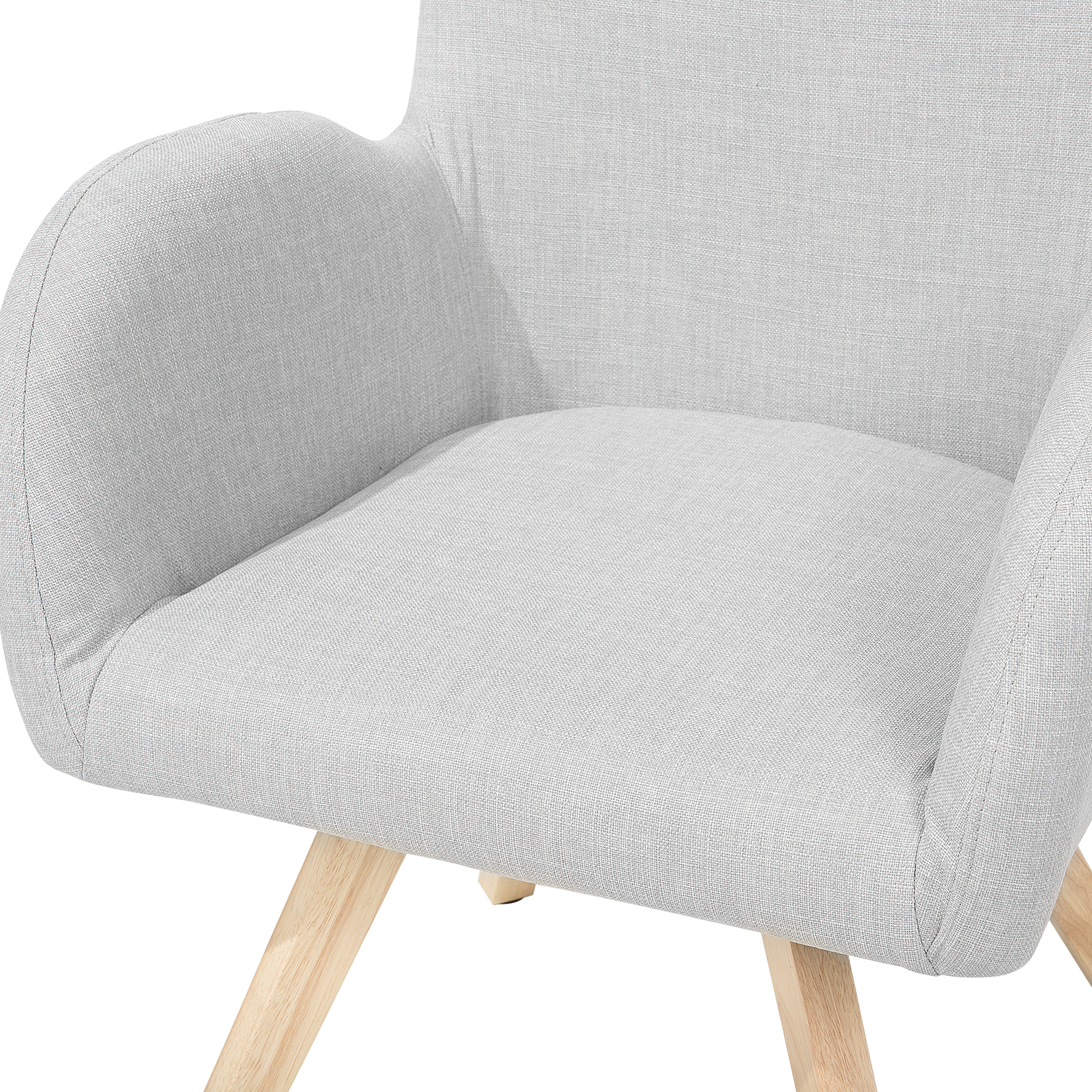 Dieser bequeme Sessel strahlt eine moderne Eleganz aus. Die breite Sitzfläche wird ergänzt durch schön geschwungene Armlehnen in einer angenehmen Höhe. In der komfortabel geformten Rückenlehne können Sie sich ganz entspannt zurücklehnen. Die schlanken, braunen Beine aus sehr starkem Gummibaumholz verleihen dem Sessel Stabilität. Der elegante, hellgraue Bezug aus Polyester ist robust und besonders pflegeleicht. Material: Polyester. Zusätzliches Material: Gummibaumholz. Material Zusammensetzung: 100% Polyester Gewicht: 7.5 Montage: Beine / Füsse nicht montiert Holzart: Hevea brasiliensis Holzursprung: China Gewichtskapazität: 120 Polsterstärke: 8 Sitzhöhe: 48 Das Angebot beinhaltet: 1 x Sessel Sitzfläche: 40.4x42 Höhe: 90 zusätzliche Information: Um sicherzustellen, dass die Konstruktion stabil und die Nutzungssicherheit gewährleistet ist, sollte man 2 Wochen nach dem Zusammenbau überprüfen, ob die Ware auch korrekt montiert wurde. Ausserdem ist alle 3 Monate zu prüfen, ob die Schrauben richtig festgezogen sind. Breite: 60 Tiefe: 55 Art: Sessel Stil: Skandinavisch Allgemeine Farbe: Grau Schatten: Hellgrau Muster: Ohne Muster Hauptmaterial: Polyester Füllmaterial: Schaumstoff Arm Stil: Abgesenkt