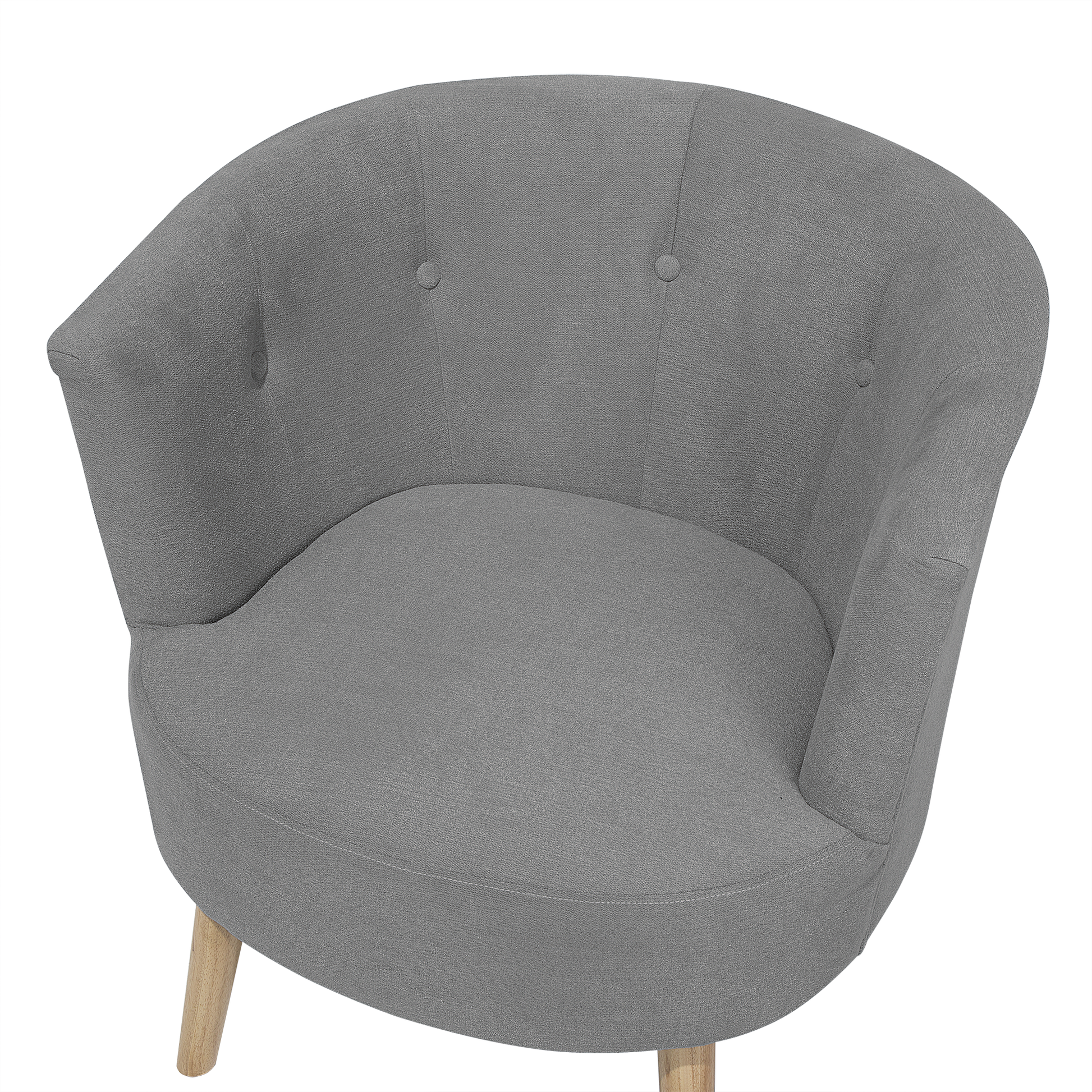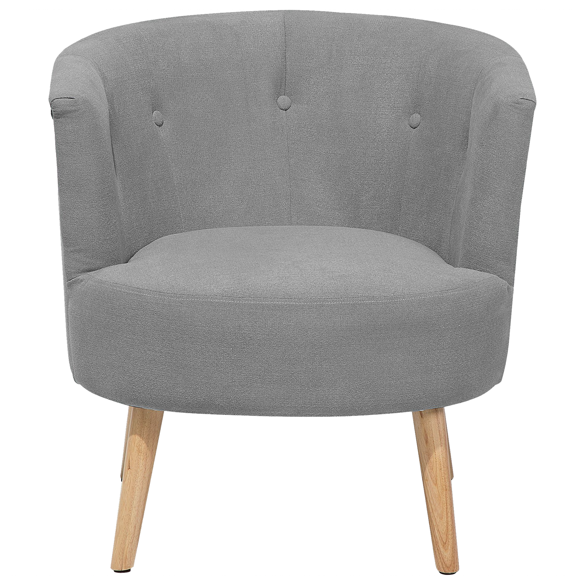 Der wunderschöne Sessel ist ein richtiges Schmuckstück. Eine bequeme, breite Sitzfläche und eine komfortabel geformte Rückenlehne in einer angenehmen Höhe laden zum Entspannen ein. Die schlanken Beine aus sehr starkem Gummibaumholz verleihen dem Sessel Stabilität. Der Bezug aus hellgrauen Polyester ist robust und besonders pflegeleicht. Die dekorative Knopfverzierung gibt diesem kleinen Sessel noch mehr Charakter.   Material: Polyester. Zusätzliches Material: Gummibaumholz.  Material Zusammensetzung: 100% Polyester Gewicht: 13 Montage: Beine / Füsse nicht montiert Gewichtskapazität: 150 Polsterstärke: 19 Sitzhöhe: 43 Das Angebot beinhaltet: 1 x Sessel Sitzfläche: 63x53 Höhe: 74 zusätzliche Information: Um sicherzustellen, dass die Konstruktion stabil und die Nutzungssicherheit gewährleistet ist, sollte man 2 Wochen nach dem Zusammenbau überprüfen, ob die Ware auch korrekt montiert wurde. Ausserdem ist alle 3 Monate zu prüfen, ob die Schrauben richtig festgezogen sind. Breite: 72 Tiefe: 73 Art: Sessel Stil: Retro Allgemeine Farbe: Grau Schatten: Hellgrau Muster: Kein Muster Hauptmaterial: Polyester Füllmaterial: Schaumstoff Arm Stil: Abgesenkt