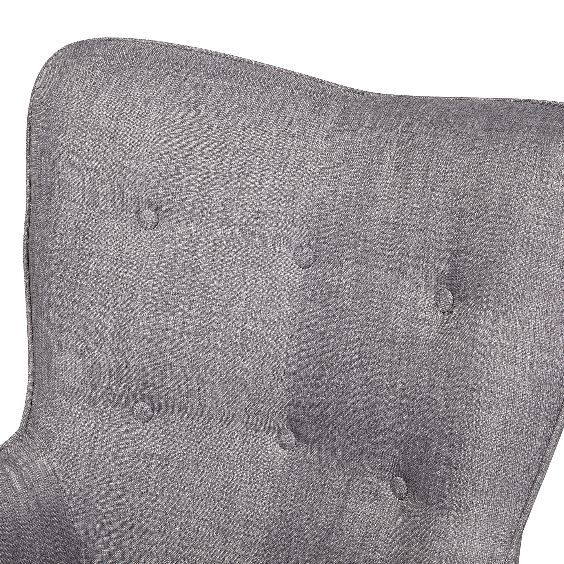 Mit diesem Set kreieren Sie einen Bereich für wohlige Stunden der nahezu königlichen Entspannung in Ihrem Wohn- oder Schlafzimmer. Die hochwertigen, angenehm weichen Stoffbezüge und die stabilen Holzbeine garanieren die Langlebigkeit und die besondere Ausstrahlung beider Möbel. Benutzen Sie den Hocker als Fussstütze und entfalten Sie noch einen höheren Sitzkomfort während Sie auf dem Sessel einen gemütlichen Fernsehabend geniessen oder sich Ihrem Buch widmen. Überzeugen Sie sich selbst von diesem gemütlichen Set.  Material: Polyester. Zusätzliches Material: Gummibaumholz.  Material Zusammensetzung: 100% Polyester Gewicht: 22 Montage: Beine / Füsse nicht montiert Holzart: Hevea brasiliensis Holzursprung: China Gewichtskapazität: 130 Gesamtabmessungen: 81x78x100 Polsterstärke: 18 Osmanische Dimensionen: 64x43x43 Sitzhöhe: 48 Das Angebot beinhaltet: 1 x Hocker, 1 x Sessel Sitzfläche: 65x51 Höhe: 100 zusätzliche Information: Um sicherzustellen, dass die Konstruktion stabil und die Nutzungssicherheit gewährleistet ist, sollte man 2 Wochen nach dem Zusammenbau überprüfen, ob die Ware auch korrekt montiert wurde. Ausserdem ist alle 3 Monate zu prüfen, ob die Schrauben richtig festgezogen sind. Breite: 81 Tiefe: 78 Art: Ohrensessel Stil: Retro Allgemeine Farbe: Grau Schatten: Hellgrau Muster: Ohne Muster Hauptmaterial: Polyester Füllmaterial: Schaumstoff Arm Stil: Abgesenkt