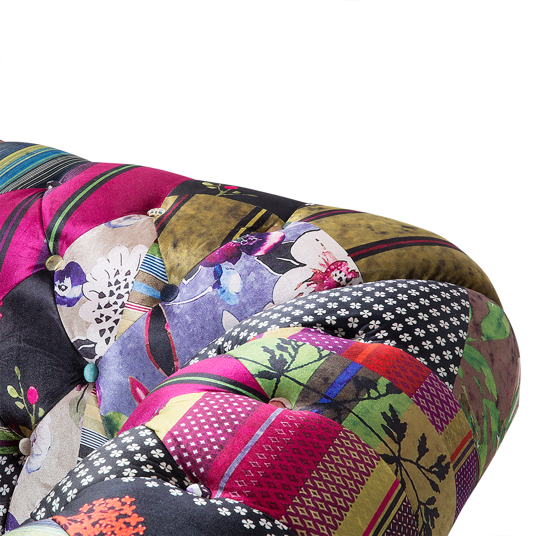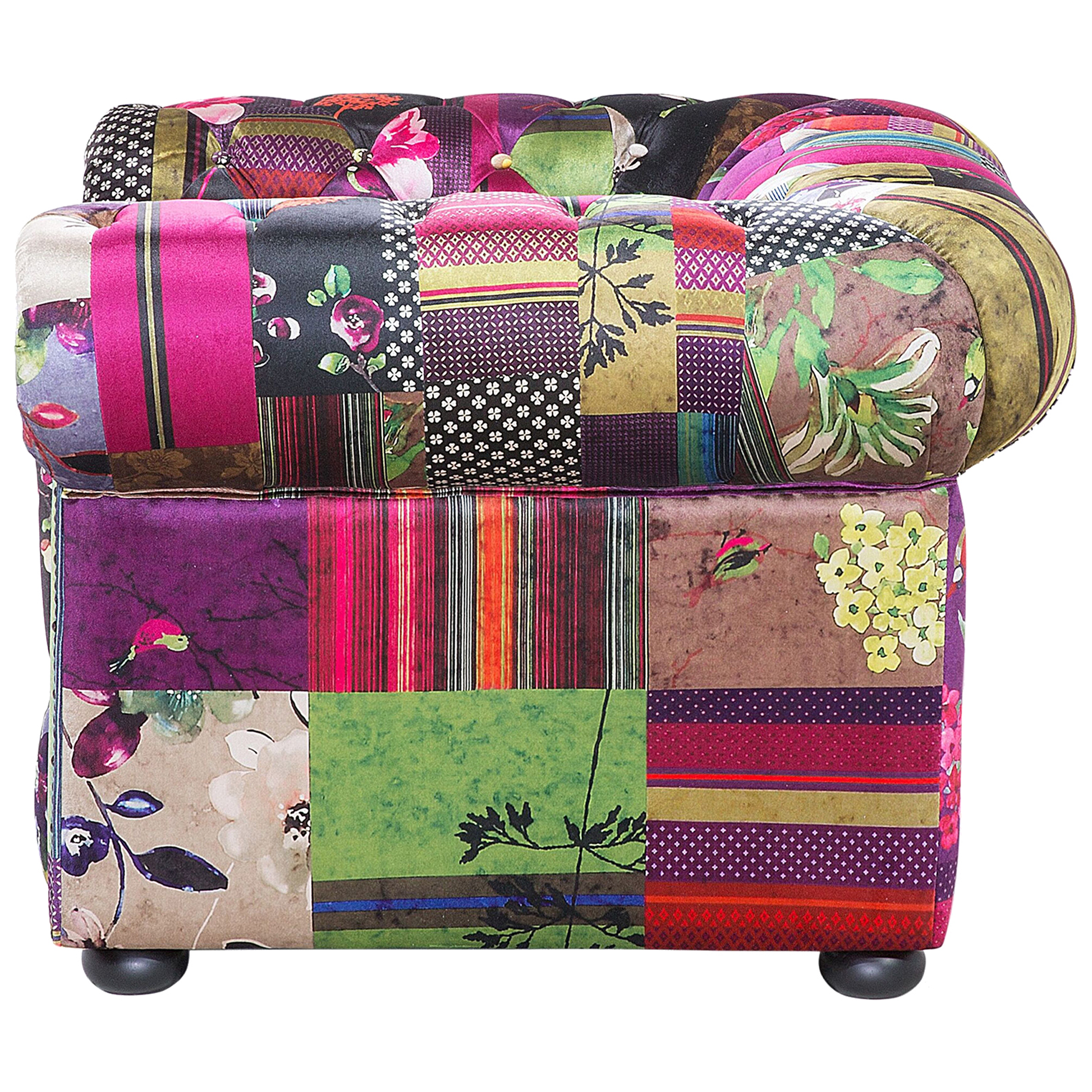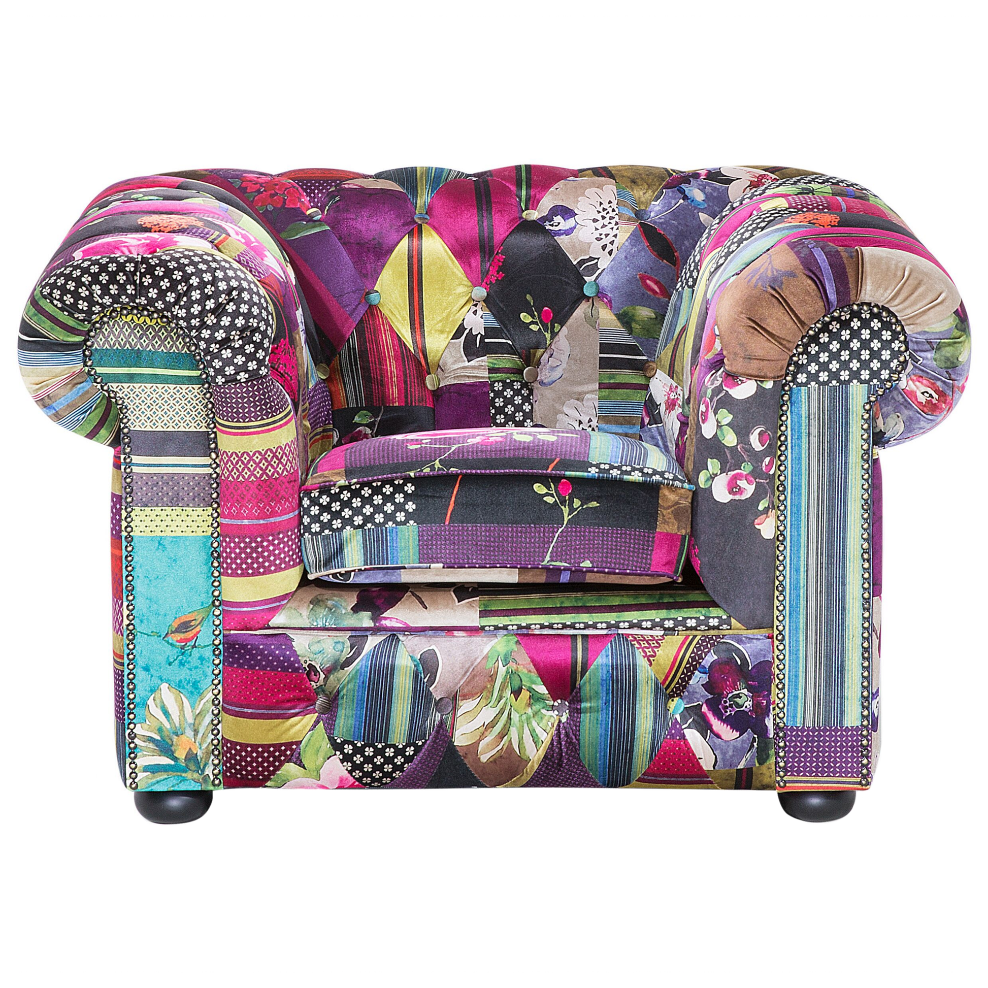 Sie suchen einen klassischen Sessel und Sie mögen es auch gerne ausgefallen? Sie lieben den traditionellen, englischen Stil und zugleich möchten Sie ein modernes Möbelstück mit einer fröhlichen Ausstrahlung? Dann ist der Sessel mit seinem trendy Patchwork-Muster mit violetten Akzenten genau das Richtige für Sie! Der zeitlose Klassiker unter den Polstermöbeln bekommt durch das bunte Muster eine besonders fröhliche Ausstrahlung. Der Rundumbezug ist aus hochwertigem Polyester gefertigt und verfügt über die charakteristische Knopfverzierung auf den wunderschön abgerundeten Rücken- und Armlehnen. Dank seiner breiten und tiefen Form ist dieser super-bequeme Sessel besonders einladend. Klassische Formgebung mit pfiffigem Charme - dieser gemütliche Sessel bietet Ihnen Entspannung pur!  Material: Polyester. Zusätzliches Material: Kiefernholz, Gummibaumholz.  Material Zusammensetzung: 100% Polyester Gewicht: 39 Montage: Beine / Füsse nicht montiert Holzart: Pinus massoniana, Hevea brasiliensis Holzursprung: China Gewichtskapazität: 130 Polsterstärke: 16 Sitzhöhe: 43 Das Angebot beinhaltet: 1 x Sessel Sitzfläche: 50x58 Höhe: 71 zusätzliche Information: Um sicherzustellen, dass die Konstruktion stabil und die Nutzungssicherheit gewährleistet ist, sollte man 2 Wochen nach dem Zusammenbau überprüfen, ob die Ware auch korrekt montiert wurde. Ausserdem ist alle 3 Monate zu prüfen, ob die Schrauben richtig festgezogen sind. Breite: 108 Tiefe: 95 Art: Sessel Stil: Boho Allgemeine Farbe: Bunt Schatten: Fuchsia Muster: Patchwork Hauptmaterial: Polyester Füllmaterial: Schaumstoff Arm Stil: Abgerundet