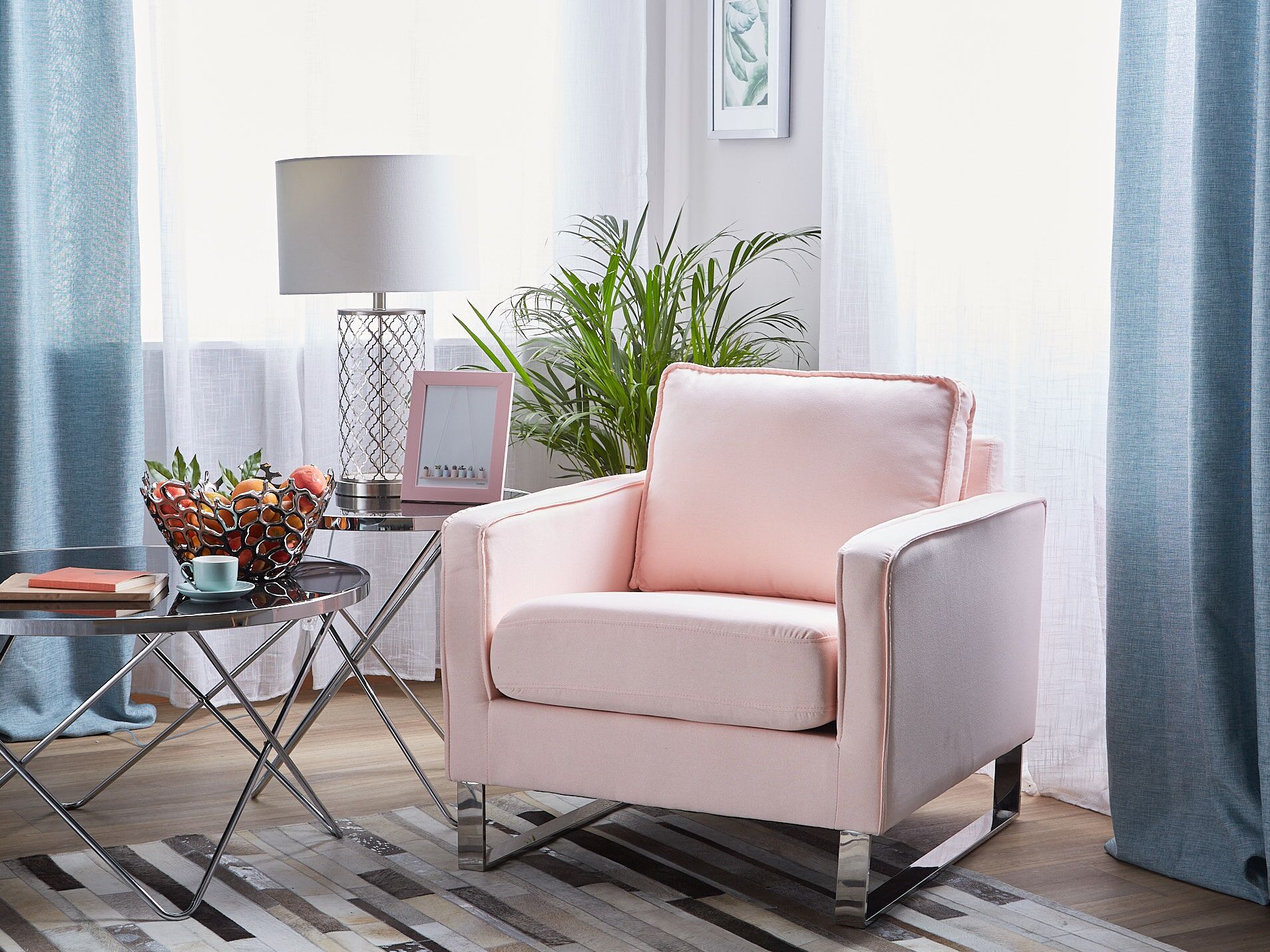 Mit seiner hochwertigen Verarbeitung strahlt dieser Polstersessel eine edle Eleganz aus, die sofort auffällt. Das robuste Holzgrundgestell und die dicke Polsterung, kombiniert mit den komfortablen Armlehnen, bieten angenehmen Sitzkomfort. Der weiche Stoffbezug besteht aus strapazierfähigem, pflegeleichtem Stoff. Die gewagten Edelstahl-Kufen sorgen für einen festen Stand und eine optimale Sitzhöhe. Material: Polyester. Zusätzliches Material: Edelstahl. Material Zusammensetzung: 100% Polyester Gewicht: 23 Montage: Teilweise montiert Gewichtskapazität: 200 Polsterstärke: 11 Sitzhöhe: 44 Das Angebot beinhaltet: 1 x Sessel Sitzfläche: 60x48 Höhe: 82 zusätzliche Information: Um sicherzustellen, dass die Konstruktion stabil und die Nutzungssicherheit gewährleistet ist, sollte man 2 Wochen nach dem Zusammenbau überprüfen, ob die Ware auch korrekt montiert wurde. Ausserdem ist alle 3 Monate zu prüfen, ob die Schrauben richtig festgezogen sind. Breite: 76 Tiefe: 82 Art: Sessel Stil: Modern Allgemeine Farbe: Rosa Muster: Ohne Muster Hauptmaterial: Polyester Füllmaterial: Schaumstoff Arm Stil: Gerade