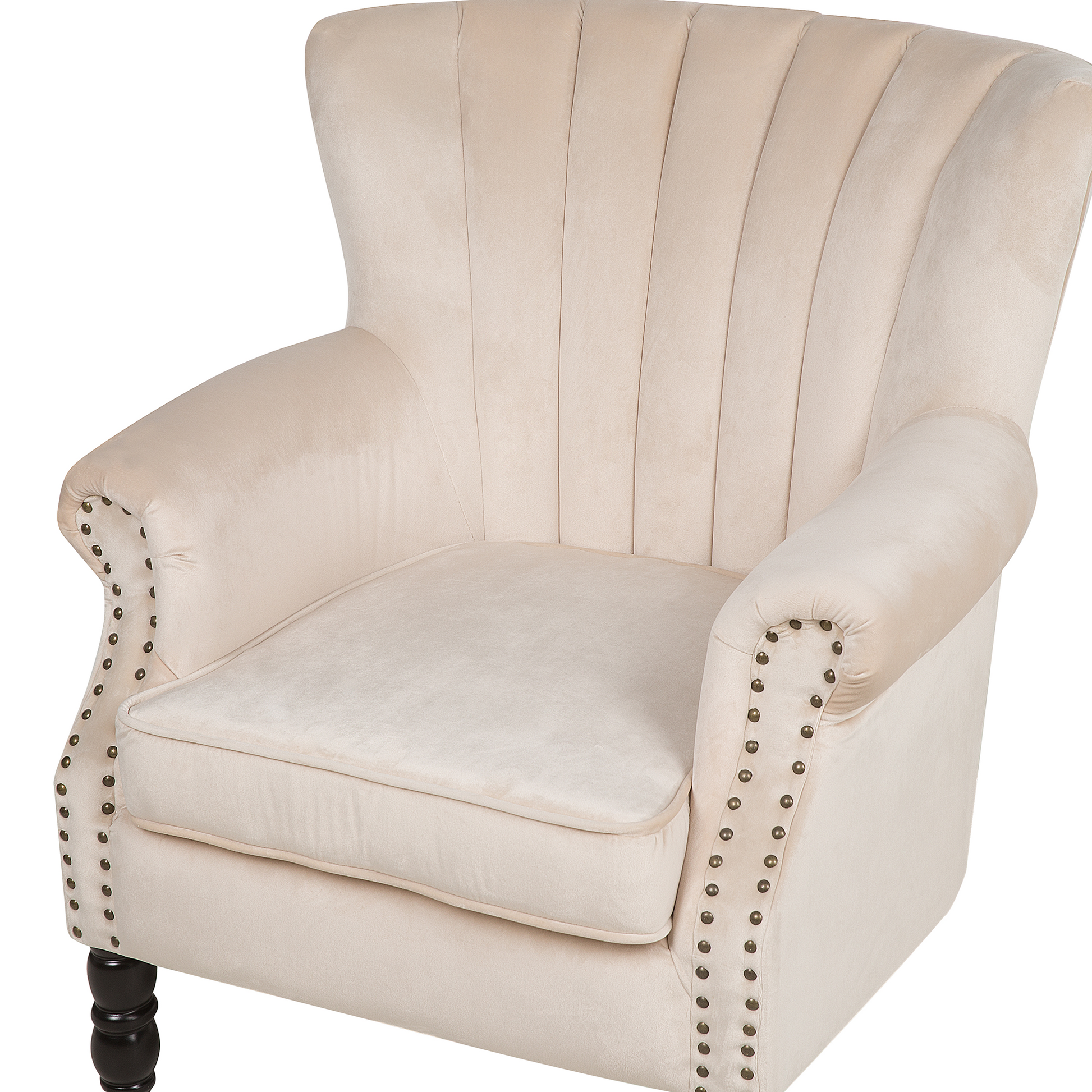 Lehnen Sie sich zurück und genießen einen Moment in unserem Wohlfühl-Sessel. Das Möbelstück ist ein eleganter Hingucker für jedes Wohnzimmer. Seine zwei äusserst dekorativen, vorderen Füsse aus Gummibaumholz harmonieren mit der samtig weichen Polsterung in Beige und der strukturierten Rückenlehne. Das Highlight - die dezente Knopfverzierung an den formschönen Armlehnen. Material: Samtstoff. Zusätzliches Material: Gummibaumholz. Material Zusammensetzung: 100% Polyester Gewicht: 17 Montage: Beine / Füsse nicht montiert Holzart: Hevea brasiliensis Gewichtskapazität: 150 Polsterstärke: 10 Sitzhöhe: 43 Das Angebot beinhaltet: 1 x Sessel Sitzfläche: 48x54 Höhe: 88 zusätzliche Information: Um sicherzustellen, dass die Konstruktion stabil und die Nutzungssicherheit gewährleistet ist, sollte man 2 Wochen nach dem Zusammenbau überprüfen, ob die Ware auch korrekt montiert wurde. Ausserdem ist alle 3 Monate zu prüfen, ob die Schrauben richtig festgezogen sind., Bitte beachten Sie, dass Samtstoff unter verschiedenen Lichtverhältnissen eine andere Optik haben kann – das Material schimmert bei Tageslicht stärker und wirkt bei künstlicher Beleuchtung in Innenräumen eher gedämpft. Aufgrund der glatten, hochdichten Struktur des Gewebes kann sein Farbton auch variieren, wenn man mit der Hand in verschiedene Richtungen und Winkel über den Stoff fährt. Um den Farbton auszugleichen und Druckstellen zu vermeiden, sollte der Webstoff sanft mit einer offenen Handfläche in eine Richtung gestrichen, mit einem feuchten Tuch abgewischt oder einem Dampfbügeleisen gebügelt werden. Breite: 77 Tiefe: 77 Art: Sessel Stil: Retro Allgemeine Farbe: Beige Schatten: Helles Beige Muster: Kein Muster Hauptmaterial: Samtstoff Füllmaterial: Schaumstoff Arm Stil: Abgerundet