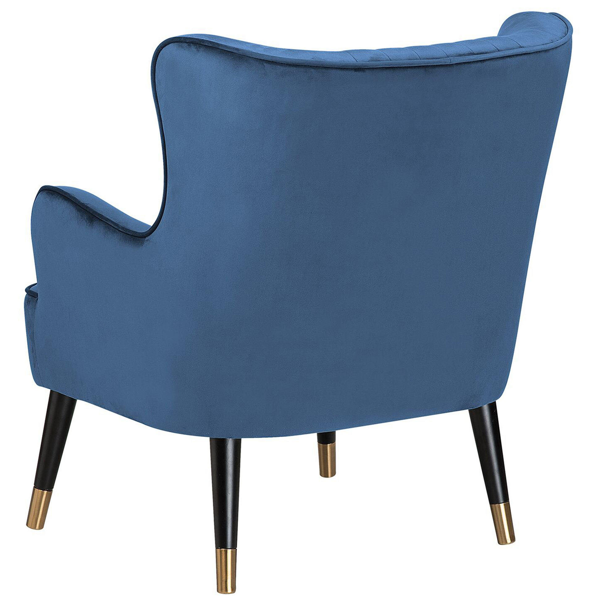 Die grosszügige Sitzfläche dieses Sessels sorgt für ein wohltuendes Sitzgefühl. Zudem sorgt die weiche Polsterung aus Samtstoff für eine angenehme Haptik und verleiht dem Möbelstück gleichzeitig eine edle Ausstrahlung. Dank des Bezuges in tiefem Blau, sowie der schwarz-goldenen Füsse passt er vor allem zu eleganten Wohnaccessoires und Einrichtungen im Marinestil. Material: Samtstoff. Zusätzliches Material: Metall. Material Zusammensetzung: 100% Polyester Gewicht: 15 Montage: Beine / Füsse nicht montiert Gewichtskapazität: 150 Polsterstärke: 20 Sitzhöhe: 45 Das Angebot beinhaltet: 1 x Sessel Sitzfläche: 54x51 Höhe: 89 zusätzliche Information: Um sicherzustellen, dass die Konstruktion stabil und die Nutzungssicherheit gewährleistet ist, sollte man 2 Wochen nach dem Zusammenbau überprüfen, ob die Ware auch korrekt montiert wurde. Ausserdem ist alle 3 Monate zu prüfen, ob die Schrauben richtig festgezogen sind., Bitte beachten Sie, dass Samtstoff unter verschiedenen Lichtverhältnissen eine andere Optik haben kann – das Material schimmert bei Tageslicht stärker und wirkt bei künstlicher Beleuchtung in Innenräumen eher gedämpft. Aufgrund der glatten, hochdichten Struktur des Gewebes kann sein Farbton auch variieren, wenn man mit der Hand in verschiedene Richtungen und Winkel über den Stoff fährt. Um den Farbton auszugleichen und Druckstellen zu vermeiden, sollte der Webstoff sanft mit einer offenen Handfläche in eine Richtung gestrichen, mit einem feuchten Tuch abgewischt oder einem Dampfbügeleisen gebügelt werden. Breite: 74 Tiefe: 77 Art: Ohrensessel Stil: Glamourös Allgemeine Farbe: Blau Schatten: Dunkelblau Muster: Ohne Muster Hauptmaterial: Samtstoff Füllmaterial: Schaumstoff Arm Stil: Abgesenkt