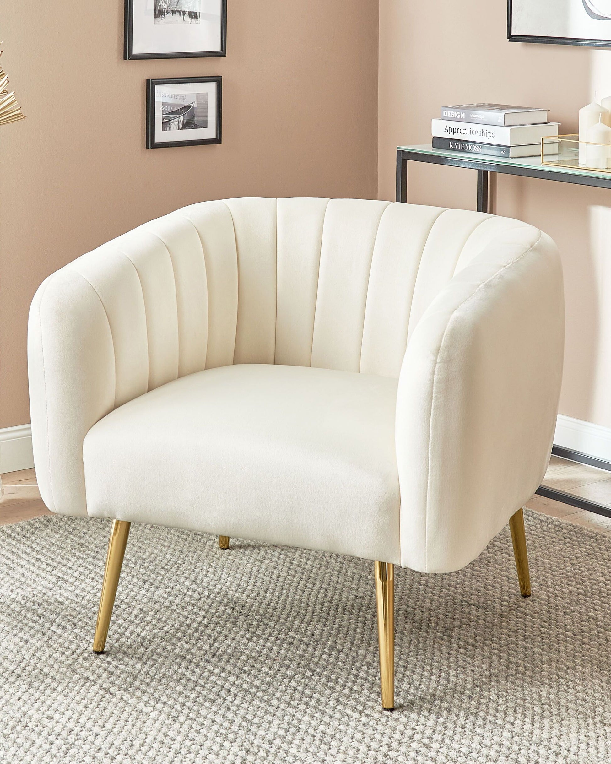 Setzen Sie auf Luxus, Geborgenheit und ein edles Ambiente, das bei Ihren Gästen schon auf den ersten Blick einen starken Eindruck hinterlässt. Der feine Samtstoff-Bezug besticht mit seinem traditionellen, historischen Charme, hohen Glamourfaktor und angenehmer Struktur. Das Zusammenspiel der modernen Form mit den leichten, eleganten Füssen aus goldenem Metall bringt einen zeitgemässen Retro-Chic-Look in den Raum. Machen Sie den Sessel zu Ihrem Lieblingsstück auf dem Sie gemütlich lesen, reden oder auch sich entspannen werden. Material: Samtstoff. Zusätzliches Material: Metall. Material Zusammensetzung: 100% Polyester Gewicht: 18 Montage: Beine / Füsse nicht montiert Gewichtskapazität: 200 Polsterstärke: 18 Sitzhöhe: 44 Das Angebot beinhaltet: 1 x Sessel Sitzfläche: 52x51 Höhe: 72 zusätzliche Information: Um sicherzustellen, dass die Konstruktion stabil und die Nutzungssicherheit gewährleistet ist, sollte man 2 Wochen nach dem Zusammenbau überprüfen, ob die Ware auch korrekt montiert wurde. Ausserdem ist alle 3 Monate zu prüfen, ob die Schrauben richtig festgezogen sind., PVC mit Polyester bildet eine hervorragende Alternative zu anderen verfügbaren Geweben für Gartenmöbel. Es ist besonders langlebig, feuchtigkeits- und schmutzabweisend. Möbel aus PVC mit Polyester sollten bei Raumtemperatur gelagert und montiert werden, da das Material dann flexibel bleibt. Niedrige Temperaturen können dazu führen, dass der Stoff sich zusammenzieht. Breite: 85 Tiefe: 62 Art: Sessel Stil: Glamourös Allgemeine Farbe: Beige Schatten: Creme Muster: Ohne Muster Hauptmaterial: Samtstoff Füllmaterial: Schaumstoff Arm Stil: Abgesenkt