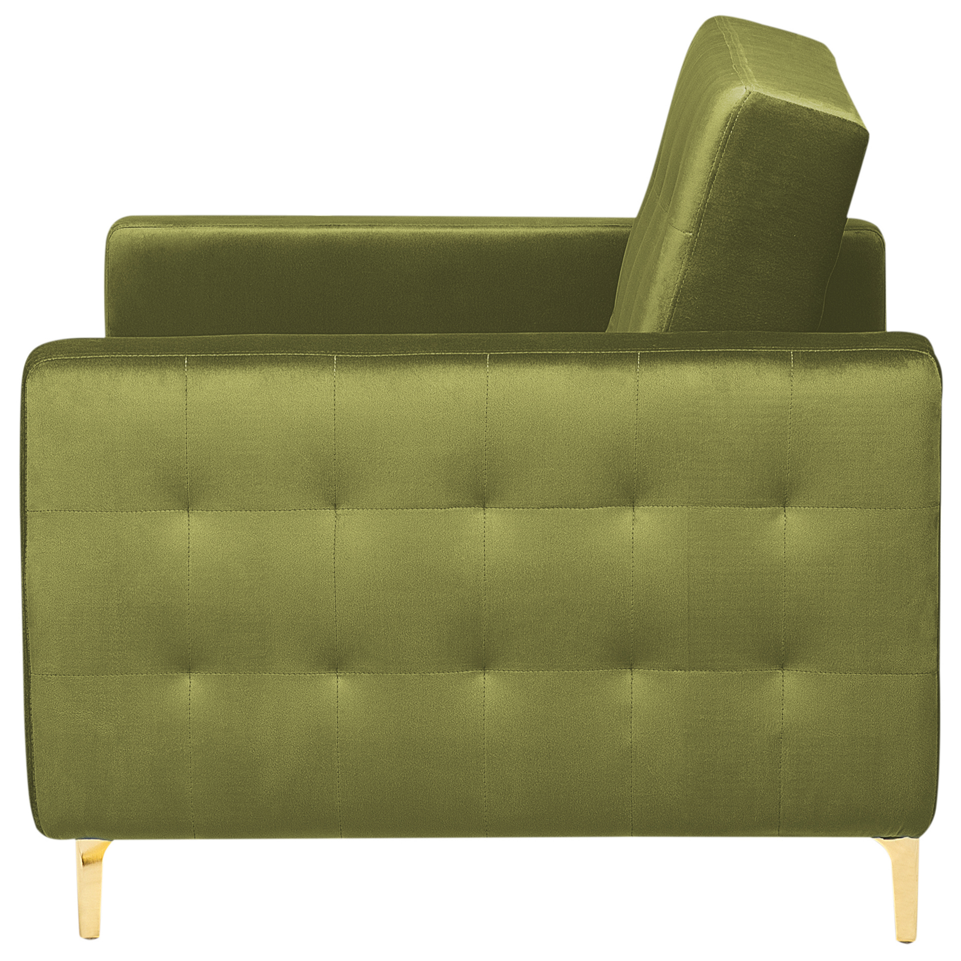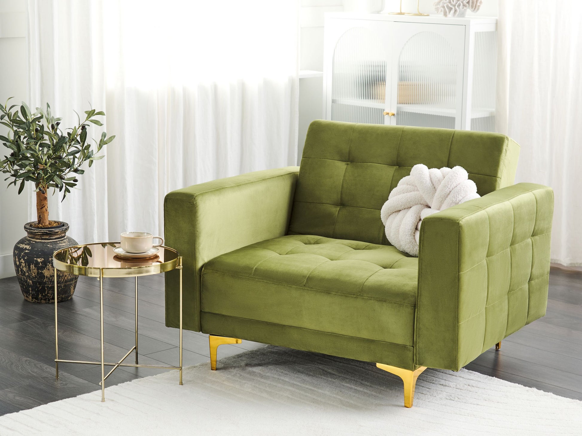 Dieser bequeme Sessel mit gestepptem Bezugsstoff ist dank seiner modernen, schlichten Form ein absoluter Blickfang und verleiht jedem Wohnzimmer eine gemütliche und geräumige Atmosphäre. Er kann sowohl einzeln aufgestellt werden als auch in Kombination mit weiteren Modulelementen dieser Serie. Material: Samtstoff. Zusätzliches Material: Metall, Sperrholz, Eukalyptus. Material Zusammensetzung: 100% Polyester Gewicht: 33 Montage: Teilweise montiert Holzart: Eucalyptus Globulus Holzursprung: China Gewichtskapazität: 150 Polsterstärke: 20 Sitzhöhe: 41 Das Angebot beinhaltet: 1 x Sessel Sitzfläche: 80x60 Höhe: 83 zusätzliche Information: Damit die beste Benutzerfreundlichkeit gewährleistet wird, sollte der Abstand zwischen der Rückenlehne und der Wand ca. 15 cm betragen., Um sicherzustellen, dass die Konstruktion stabil und die Nutzungssicherheit gewährleistet ist, sollte man 2 Wochen nach dem Zusammenbau überprüfen, ob die Ware auch korrekt montiert wurde. Ausserdem ist alle 3 Monate zu prüfen, ob die Schrauben richtig festgezogen sind., Bitte beachten Sie, dass Samtstoff unter verschiedenen Lichtverhältnissen eine andere Optik haben kann – das Material schimmert bei Tageslicht stärker und wirkt bei künstlicher Beleuchtung in Innenräumen eher gedämpft. Aufgrund der glatten, hochdichten Struktur des Gewebes kann sein Farbton auch variieren, wenn man mit der Hand in verschiedene Richtungen und Winkel über den Stoff fährt. Um den Farbton auszugleichen und Druckstellen zu vermeiden, sollte der Webstoff sanft mit einer offenen Handfläche in eine Richtung gestrichen, mit einem feuchten Tuch abgewischt oder einem Dampfbügeleisen gebügelt werden. Breite: 106 Tiefe: 88 Art: Sessel Stil: Klassisch Allgemeine Farbe: Grün Schatten: Olivgrün Muster: Ohne Muster Hauptmaterial: Samtstoff Füllmaterial: Schaumstoff Arm Stil: Gerade