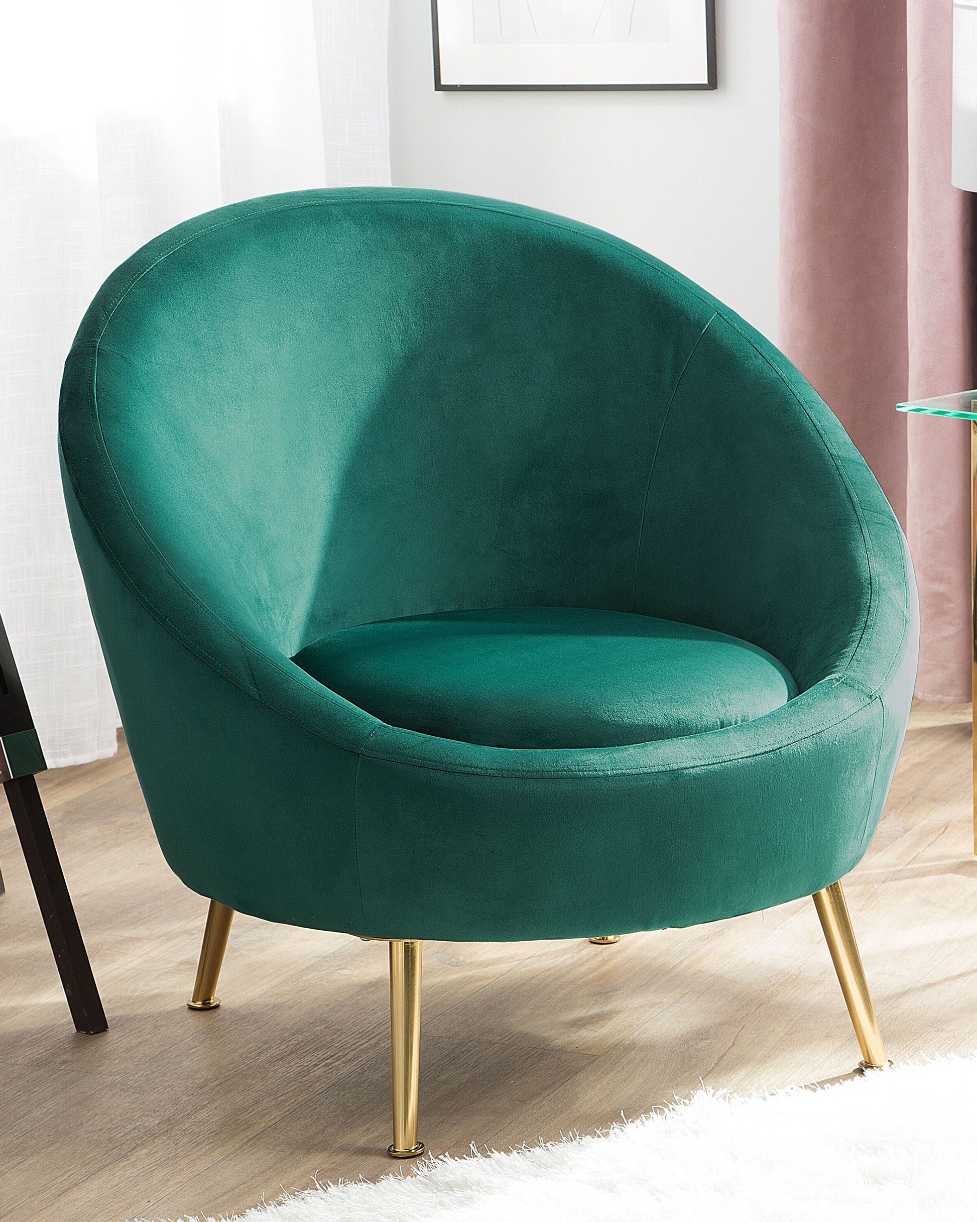 Ein Designerstück, das Leben in Ihre Inneneinrichtung zaubert. Die tiefe, bequeme Sitzfläche und die moderne, runde Form des Sessels machen ihn zum komfortablen und schicken Möbelstück schlechthin. Zudem verleihen ihm die schmalen, goldenen Füsse eine edle Leichtigkeit. Perfekt für Ihr klassisches als auch Retro oder futuristisches Interieur. Material: Samtstoff. Zusätzliches Material: Metall. Material Zusammensetzung: 100% Polyester Gewicht: 13 Montage: Beine / Füsse nicht montiert Gewichtskapazität: 150 Polsterstärke: 18 Sitzhöhe: 37 Das Angebot beinhaltet: 1 x Sessel Sitzfläche: 49x49 Höhe: 81 zusätzliche Information: Um sicherzustellen, dass die Konstruktion stabil und die Nutzungssicherheit gewährleistet ist, sollte man 2 Wochen nach dem Zusammenbau überprüfen, ob die Ware auch korrekt montiert wurde. Ausserdem ist alle 3 Monate zu prüfen, ob die Schrauben richtig festgezogen sind., Bitte beachten Sie, dass Samtstoff unter verschiedenen Lichtverhältnissen eine andere Optik haben kann – das Material schimmert bei Tageslicht stärker und wirkt bei künstlicher Beleuchtung in Innenräumen eher gedämpft. Aufgrund der glatten, hochdichten Struktur des Gewebes kann sein Farbton auch variieren, wenn man mit der Hand in verschiedene Richtungen und Winkel über den Stoff fährt. Um den Farbton auszugleichen und Druckstellen zu vermeiden, sollte der Webstoff sanft mit einer offenen Handfläche in eine Richtung gestrichen, mit einem feuchten Tuch abgewischt oder einem Dampfbügeleisen gebügelt werden. Breite: 80 Tiefe: 76 Art: Sessel Stil: Retro Allgemeine Farbe: Grün Schatten: Dunkelgrün Muster: Ohne Muster Hauptmaterial: Samtstoff Füllmaterial: Schaumstoff Arm Stil: Ohne Armlehnen