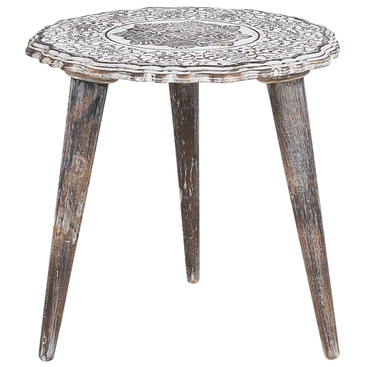 Beistelltisch 2er Set Mangoholz hellbraun / weiss rund UDAY