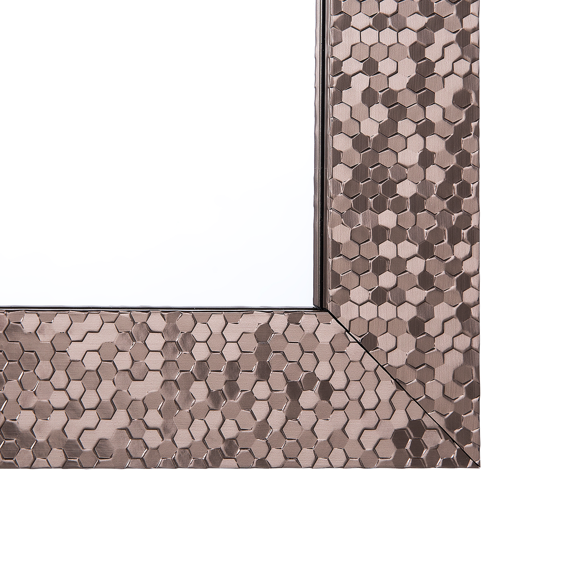 Ein schönes Zusammenspiel von Funktionalität und Design - Dieser rechteckige Spiegel zeichnet sich aus durch seinen Rahmen mit wunderschönem Wabenmuster in glänzendem Brauntönen, welches ihm ein ganz besondere und glamouröse Note verleiht. Der Wandspiegel kann je nach Bedarf im Hoch- oder Querformat in jedem Wohnraum aufgehängt werden.  Material: Kunststoff. Zusätzliches Material: Glas.  Gewicht: 7 Montage: Benötigt keine Montage Das Angebot beinhaltet: 1 x Spiegel Höhe: 130 Gestalten: Rechteckig Breite: 50 Tiefe: 2 Art: Wandspiegel Stil: Klassisch Allgemeine Farbe: Braun Hauptmaterial: Kunststoff Orientierung: Vertikal