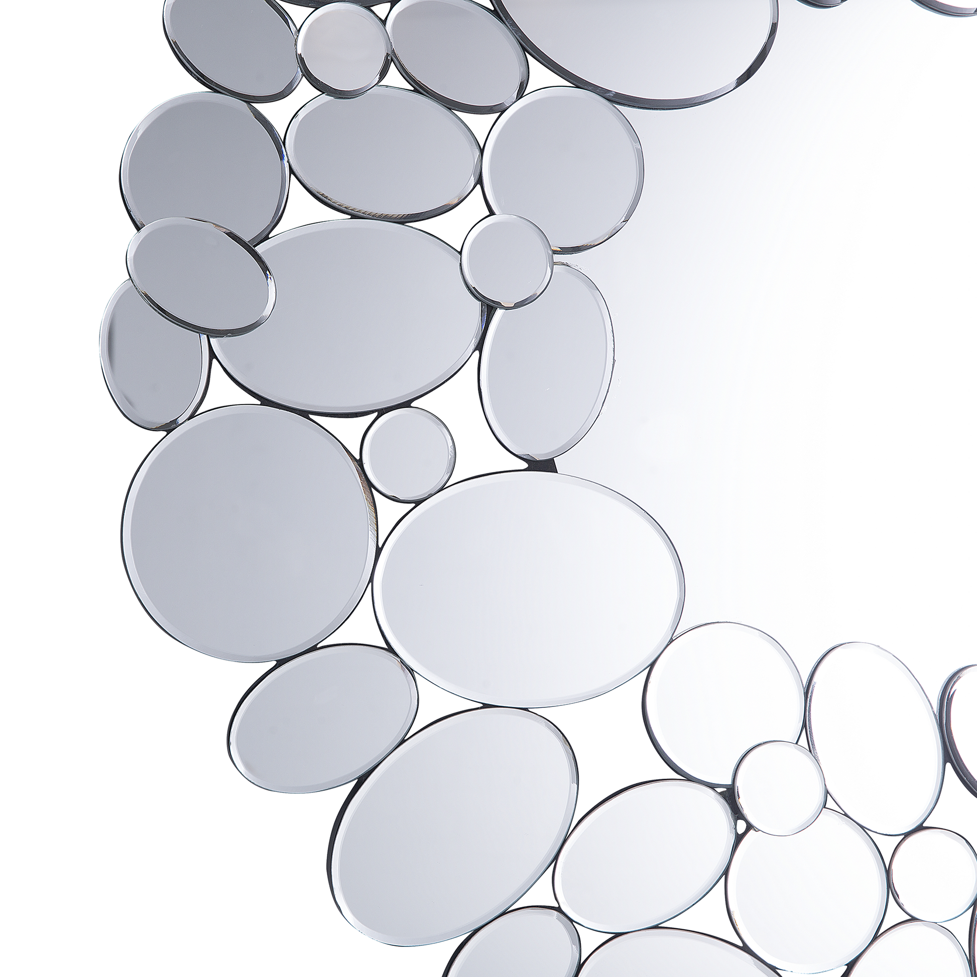 Die abgerundete Spiegelfläche in Verbindung mit dem einzigartigen Rahmen aus einzelnen, ovalen Glaselementen wird zu einem Designobjekt, dass alle Blicke auf sich zieht. Die reflektierende Glasfläche sorgt für Helligkeit, kreiert eine offene Atmosphäre im Raum und ist hervorragend geeignet um Ihre Einrichtung zu exponieren. Ein extravaganter Dekospiegel für Wände, die einen garantiert verzaubern.  Material: MDF-Platte. Zusätzliches Material: Glas.  Gewicht: 7 Montage: Benötigt keine Montage Das Angebot beinhaltet: 1 x Spiegel Höhe: 70 Gestalten: Rund Breite: 70 Tiefe: 2 Art: Wandspiegel Stil: Glamourös Allgemeine Farbe: Silber Hauptmaterial: MDF-Platte