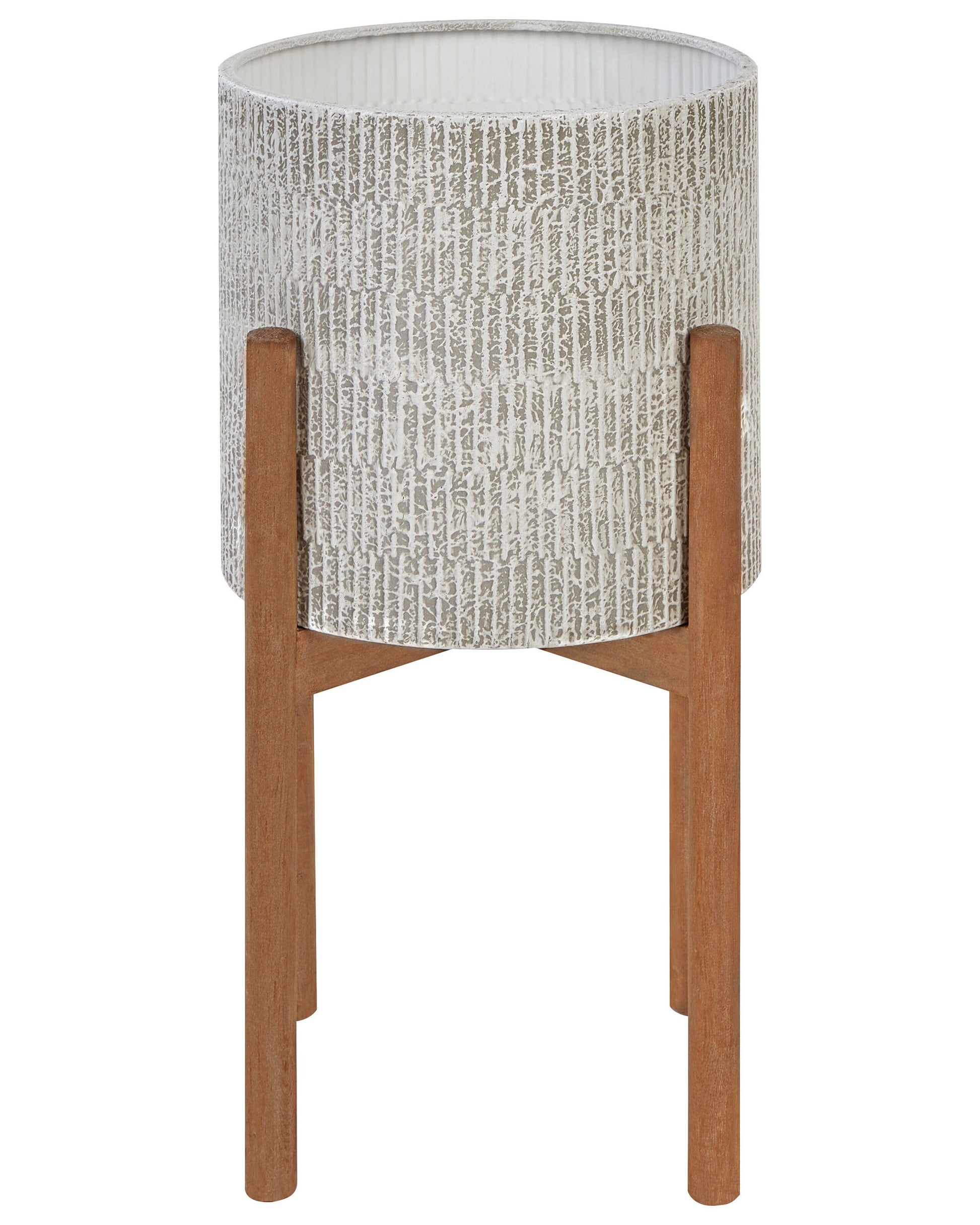 Wenn Sie auf der Suche nach einer stilvollen Möglichkeit sind, Ihre Pflanzen zu präsentieren, ist dieser Metallpflanzgefäss das perfekte Accessoire. Er ist modern und minimalistisch und besteht aus einem Holzständer und einem Metalltopf mit strukturierter Oberfläche. Füllen Sie ihn mit Ihrer Lieblingspflanze und bringen Sie einen Hauch von Natur in Ihr Zuhause. Material: Eisen. Zusätzliches Material: Tannenholz. Gewicht: 2 Montage: Benötigt keine Montage Holzart: Abies lignum Holzursprung: China Das Angebot beinhaltet: 1 x Blumentopf auf Beinen Höhe: 59 Gestalten: Rund Breite: 30 Tiefe: 30 Art: Blumentopf mit Beinen Stil: Modern Allgemeine Farbe: Grau Schatten: Hellgrau Hauptmaterial: Eisen