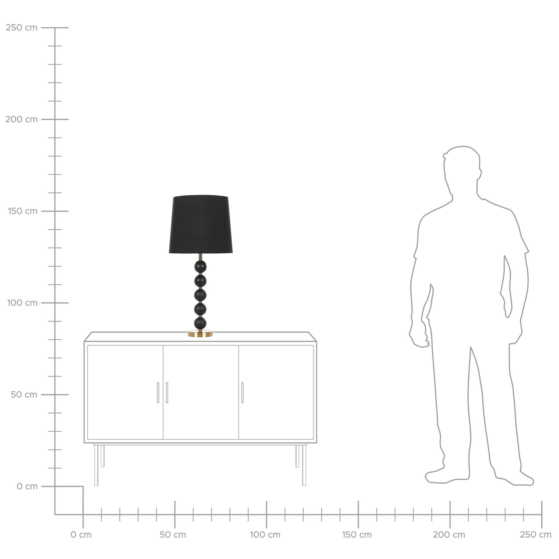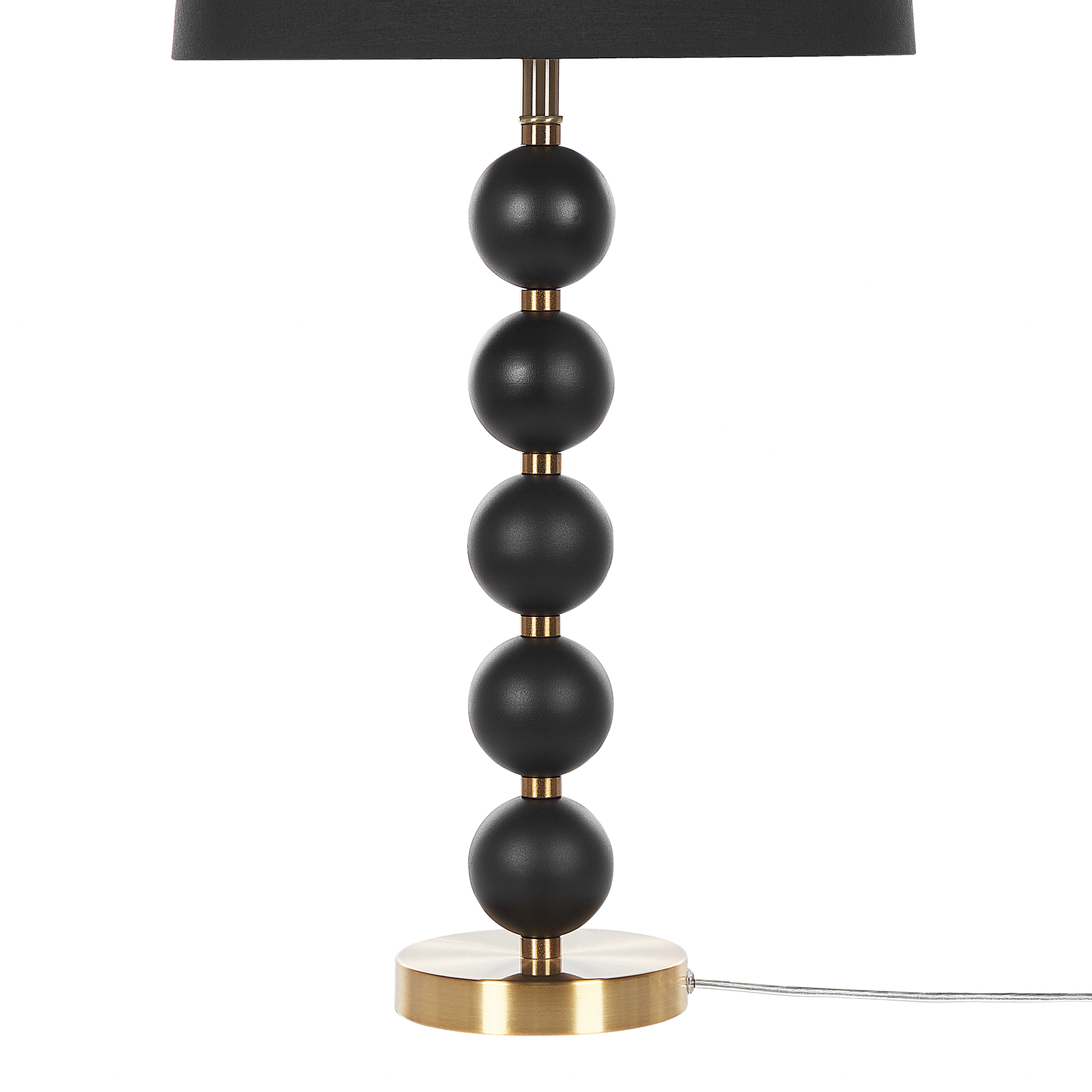 Die Kombination der modernen Farben wirkt besonders edel bei dieser aparten Tischlampe. Die fünf identisch gefertigten Kugeln in mattem Schwarz zieren im gleichmässigen Abstand den goldfarbenen Standfuss und harmonisieren perfekt mit dem Lampenschirm in ebenmässigen Schwarz. Stilvoll fügt sie sich wunderbar in ein modernes Wohnambiente ein. Material: Stahl. Zusätzliches Material: Polyester, Baumwolle. Material Zusammensetzung: 50 % Baumwolle, 50 % Polyester Gewicht: 2 Montage: Teilweise montiert Das Angebot beinhaltet: 1 x Tischleuchte, Nicht im Lieferumfang enthalten: Leuchtmittel Höhe: 75 zusätzliche Information: Diese Leuchte ist geeignet für Leuchtmittel der Energieklassen A bis G auf einer Skala von A (sehr effizient) bis G (weniger effizient). Geeignet für: LED Leuchtmittel, Eco-Halogen Leuchtmittel, Energiesparleuchtmittel., Die Stromkabel dürfen nur von einem qualifizierten Elektriker angepasst werden. Breite: 35 Tiefe: 35 Art: Tischleuchte Stil: Modern Allgemeine Farbe: Schwarz Hauptmaterial: Stahl Fassung: 40 W IP Protection Code: IP 20