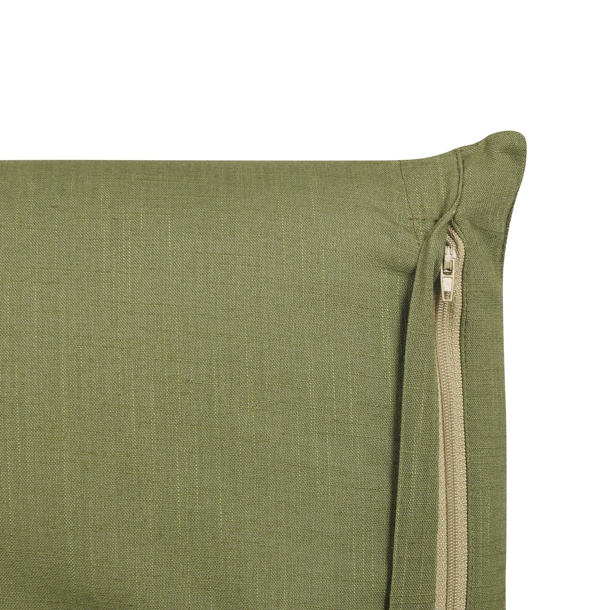 Bringen Sie etwas Farbe in Ihre Räume mit diesen dekorativen Sofakissen Set. Die Vorderseiten der Bezüge sind aus Leinen gefertigt, die von Natur aus strapazierfähig, antibakteriell und leicht zu waschen sind. Leinen werden mit jedem Waschgang weicher, wodurch Ihnen die Kissen praktisch ewig halten werden. Die Rückseiten der Hüllen punkten mit ihrer Fertigung aus hochwertiger, weicher Baumwolle. Dabei sind die Bezüge pflegeleicht, da sie mit Reissverschlüssen versehen sind, mit denen sie sich abnehmen lassen. Die Sofakissen werden sich dank ihrer natürlichen Materialien und dem grünen Farbton mit Sicherheit in jeder modernen Einrichtung sowie in Retro-Räumen beweisen. Material: Leinen. Zusätzliches Material: Baumwolle. Montage: Benötigt keine Montage Das Angebot beinhaltet: 2 x Zierkissen Höhe: 10 zusätzliche Information: Das Kissen ist vakuumverpackt. Nehmen Sie Ihr Kissen aus der Verpackung heraus und lassen Sie es 24 Stunden lang liegen, bis es seine volle Dichte erreicht. Gestalten: Quadratisch Breite: 45 Tiefe: 45 Art: Kissen 2er Set Stil: Klassisch Allgemeine Farbe: Grün Muster: Kein Muster Hauptmaterial: Leinen Füllmaterial: Polyester